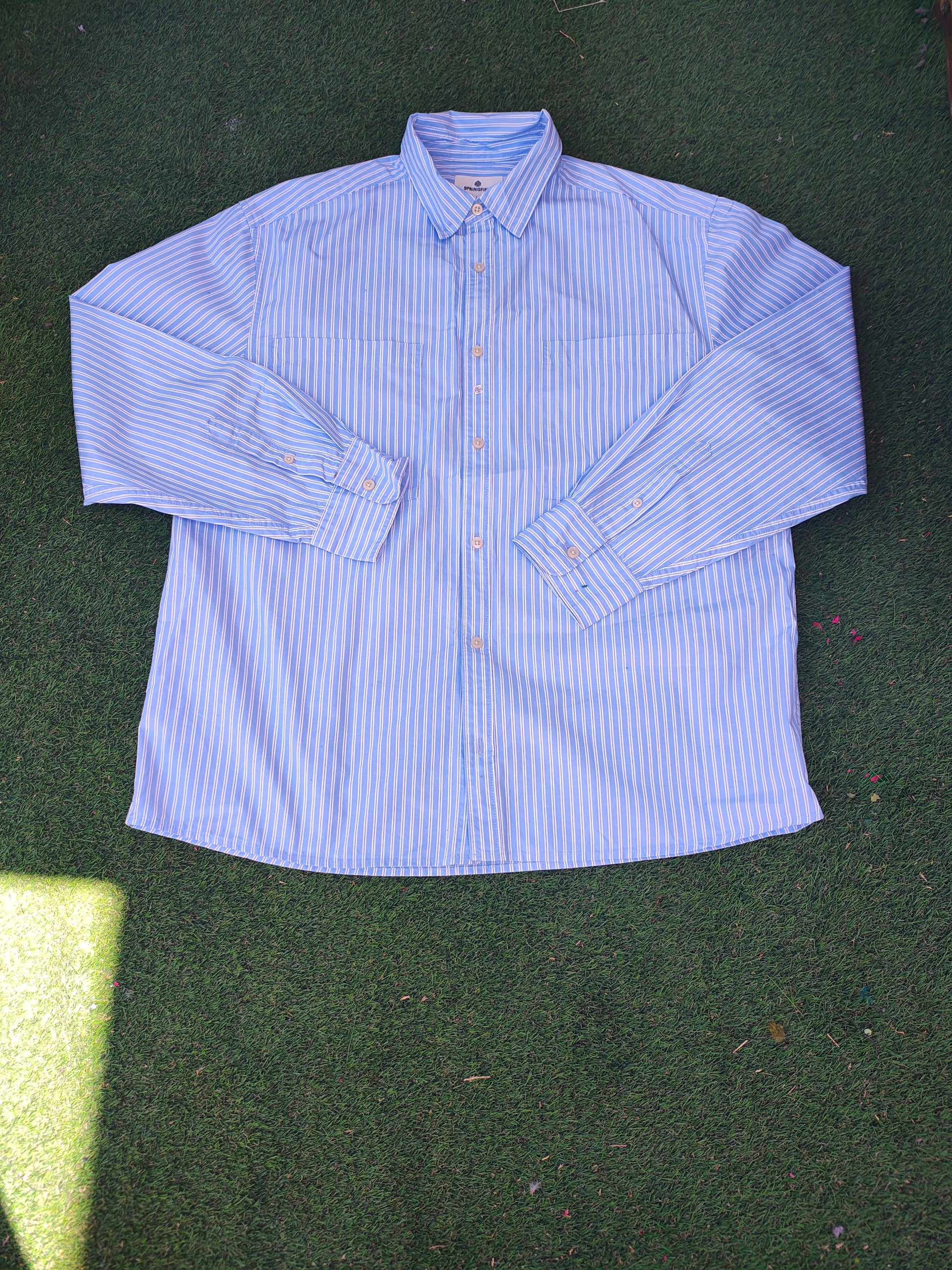 Ajoutez une touche d'audace à votre style avec notre chemise rayée bleue ! De la marque SPRINGFIELD et en parfait état, cette taille L vous offrira un look audacieux pour vos aventures. Osez vous démarquer et affirmer votre style avec cette chemise unique !