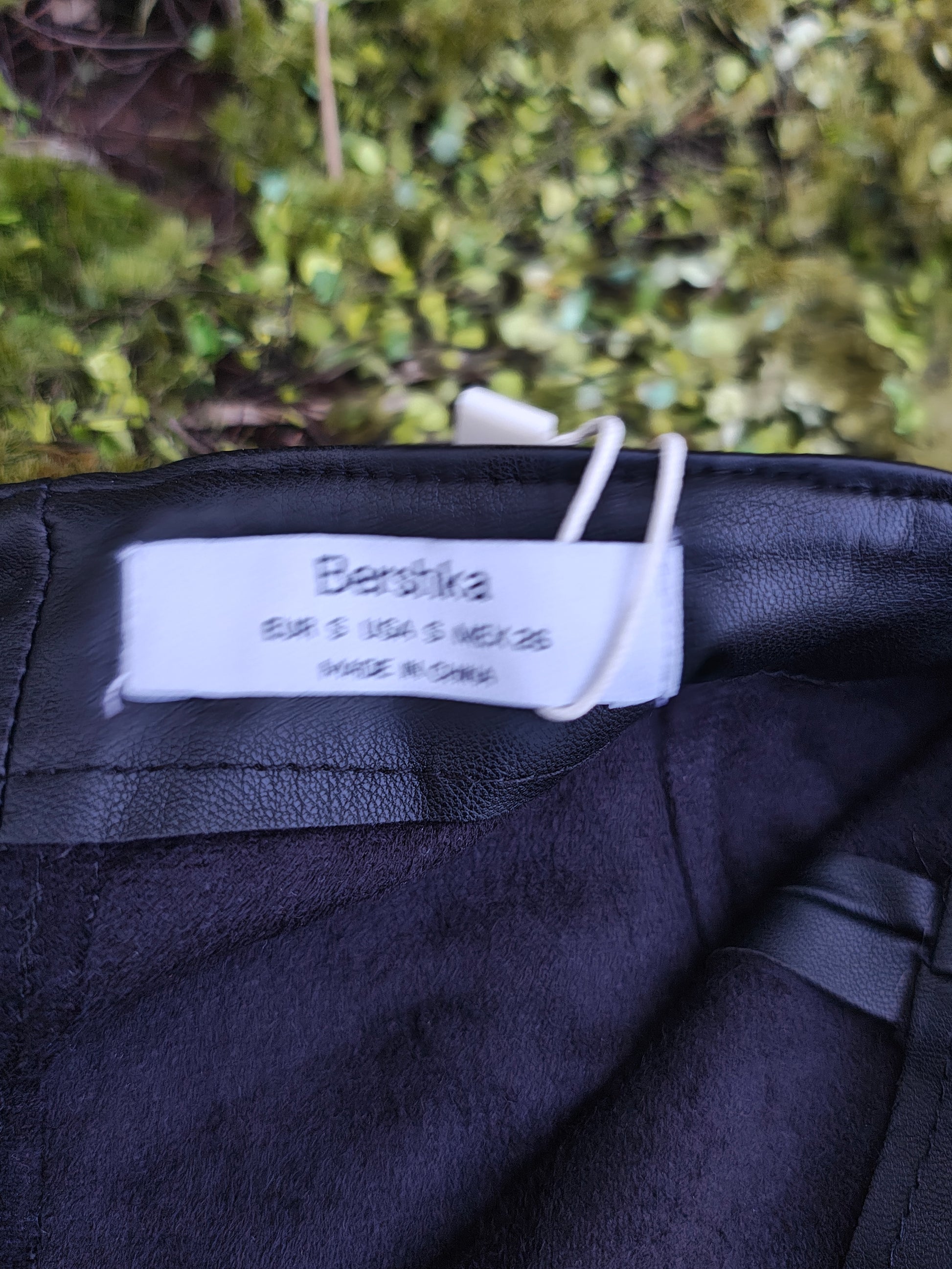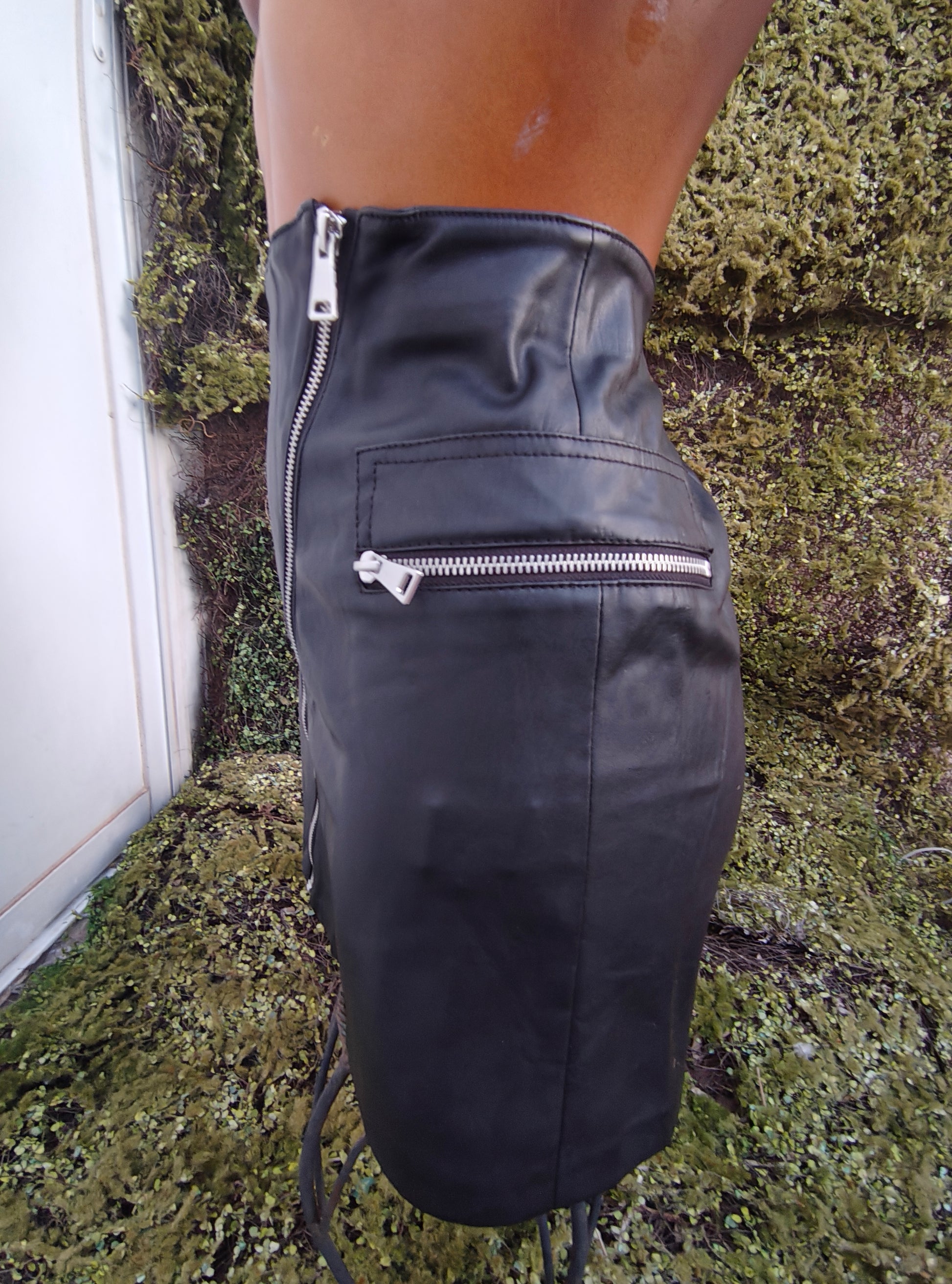 NOUVEAU - Bershka - Jupe en similicuir noir avec fermetures éclair diagonales (Taille S)