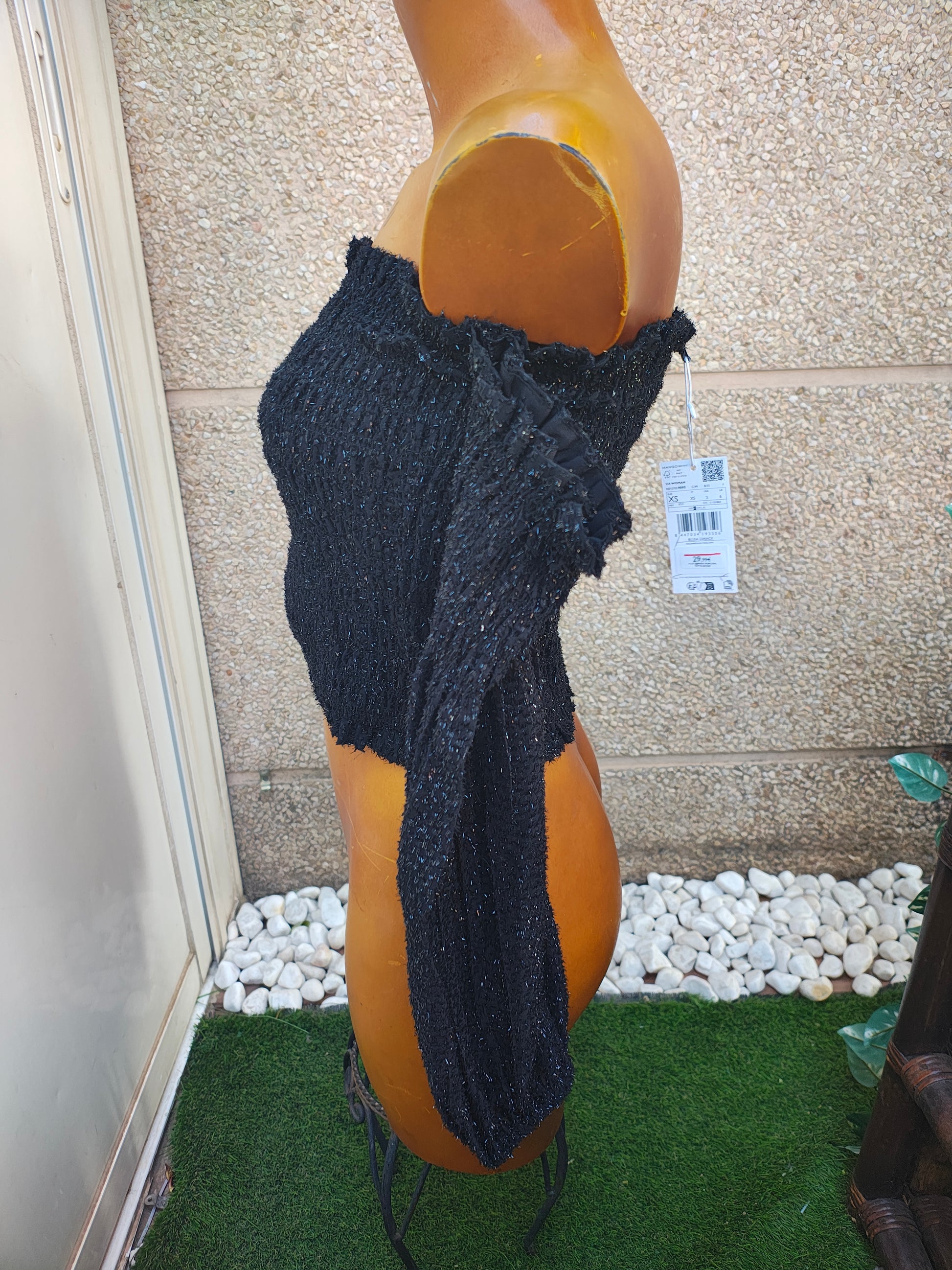 NUEVO – Blusa negra palabra de honor con mangas largas abullonadas MNG (Talla XS)