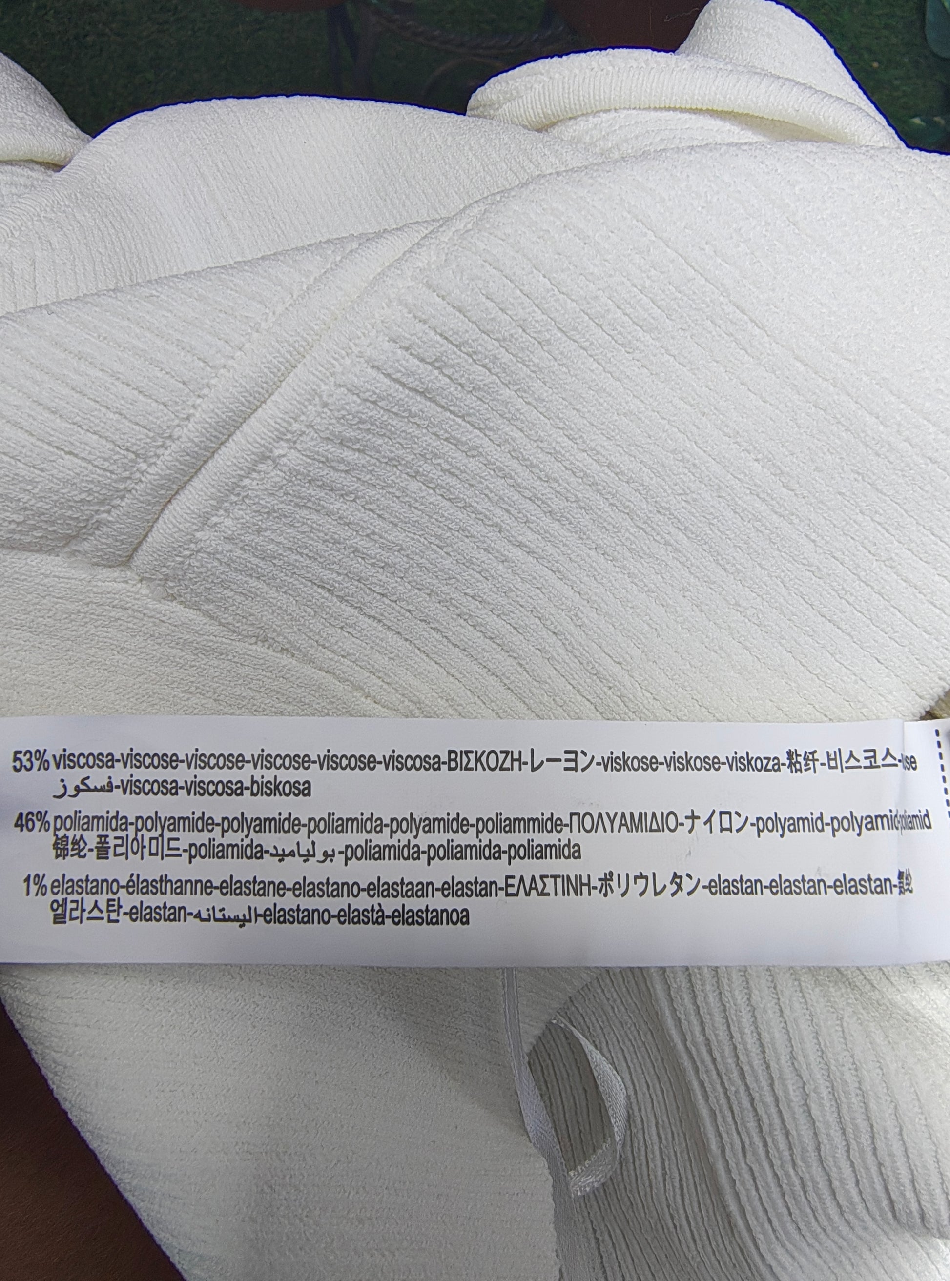 🧵 Hecho en China. Composición: 53% viscosa, 46% poliamida, 1% elastano.
