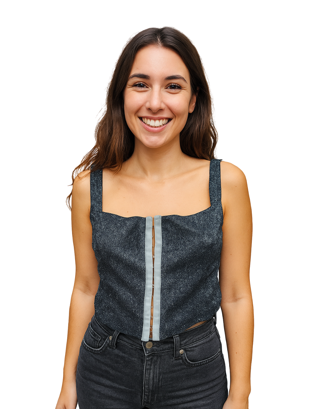 🔝 Cierre frontal con botones metálicos tipo gancho que aportan un toque moderno y llamativo. Espalda con ligero fruncido elástico para mejor ajuste y mayor comodidad.