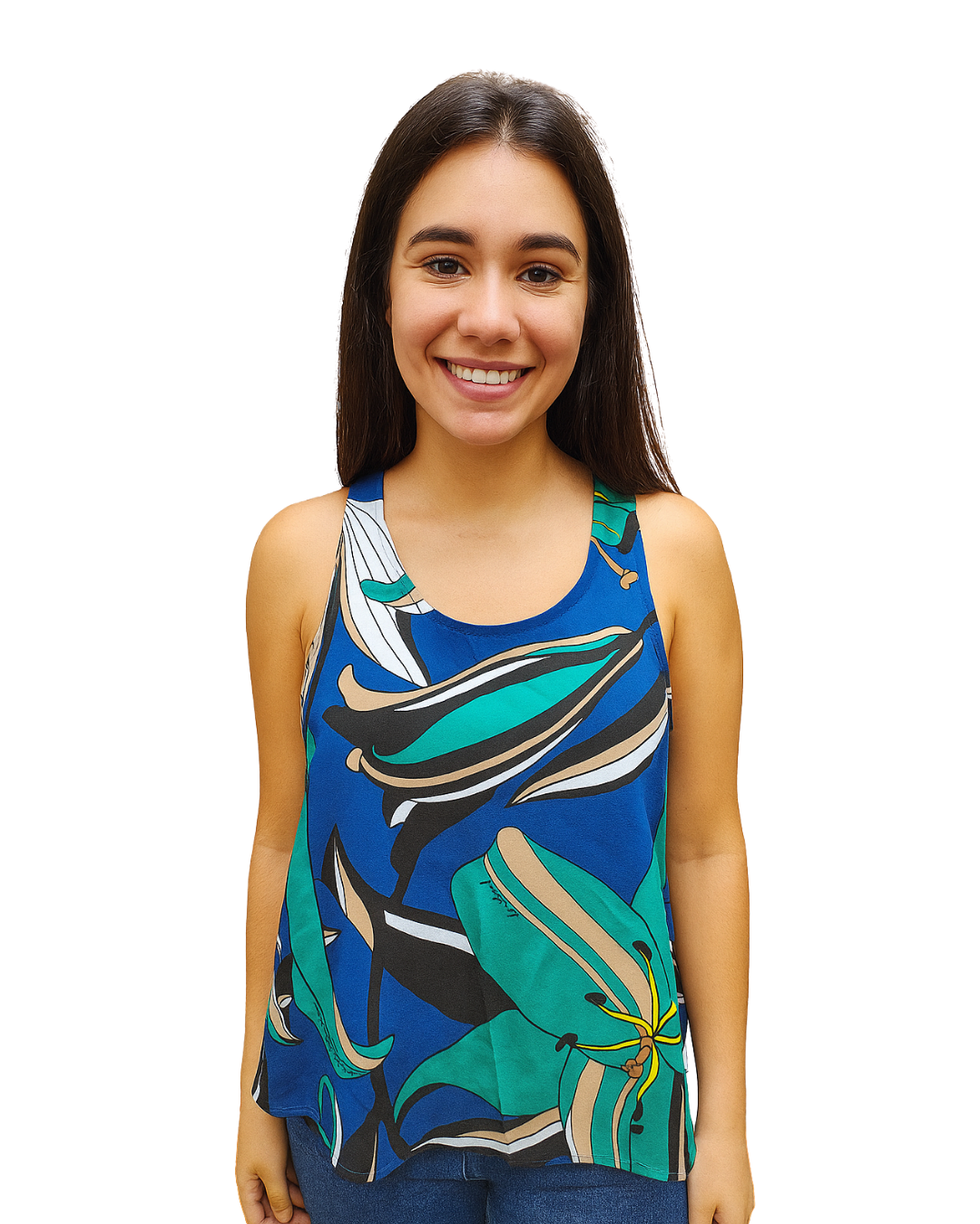 💙🌿Top sin mangas con diseño cruzado en la espalda y estampado abstracto en tonos azul, verde menta, blanco y negro. Corte fluido, escote redondo y abertura posterior en pico que le da un toque fresco y original. Ideal para destacar en looks de verano o escapadas urbanas.