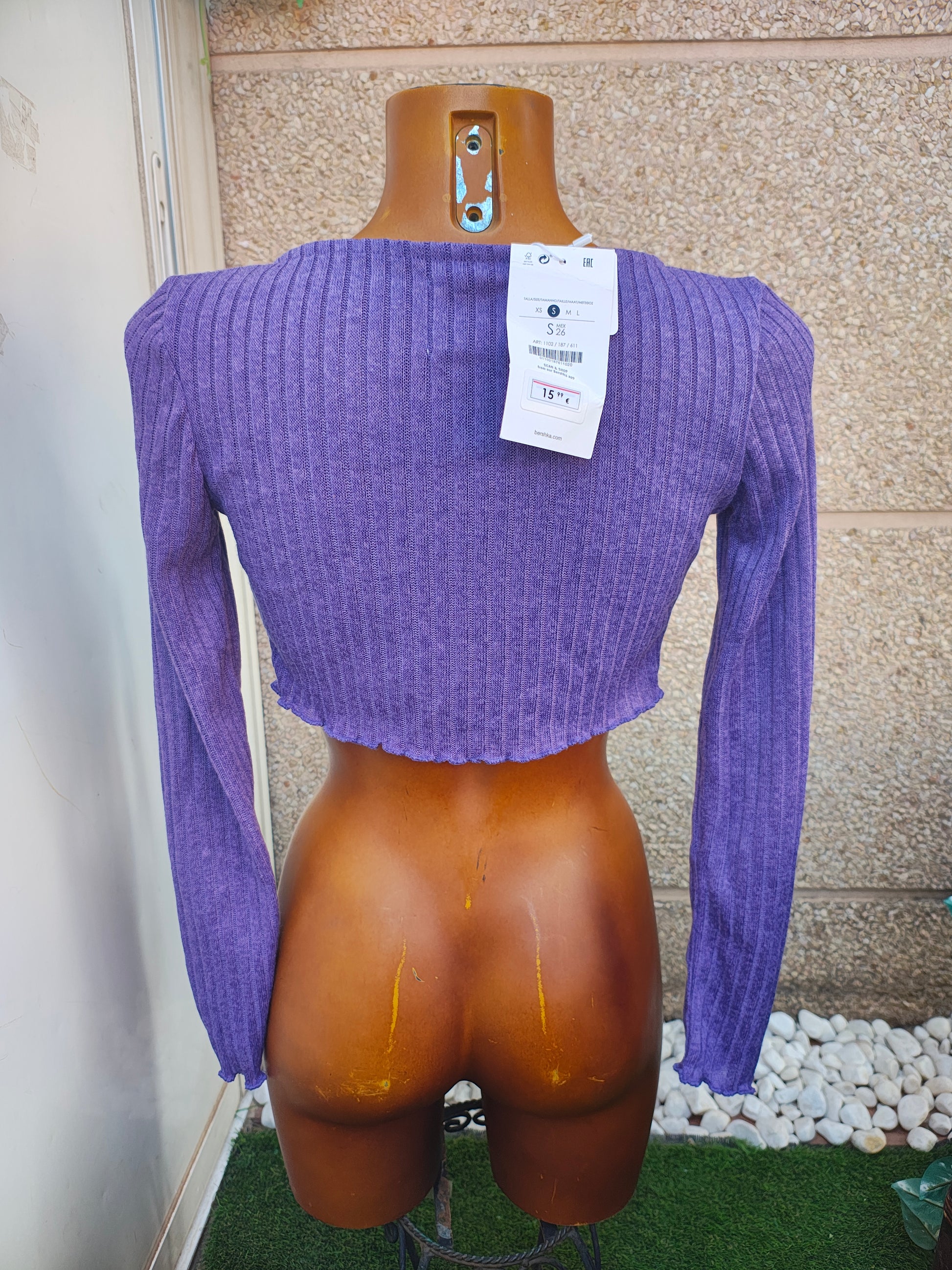 NUEVO– Top lila de punto canalé con lazo delantero Bershka (Talla S)
