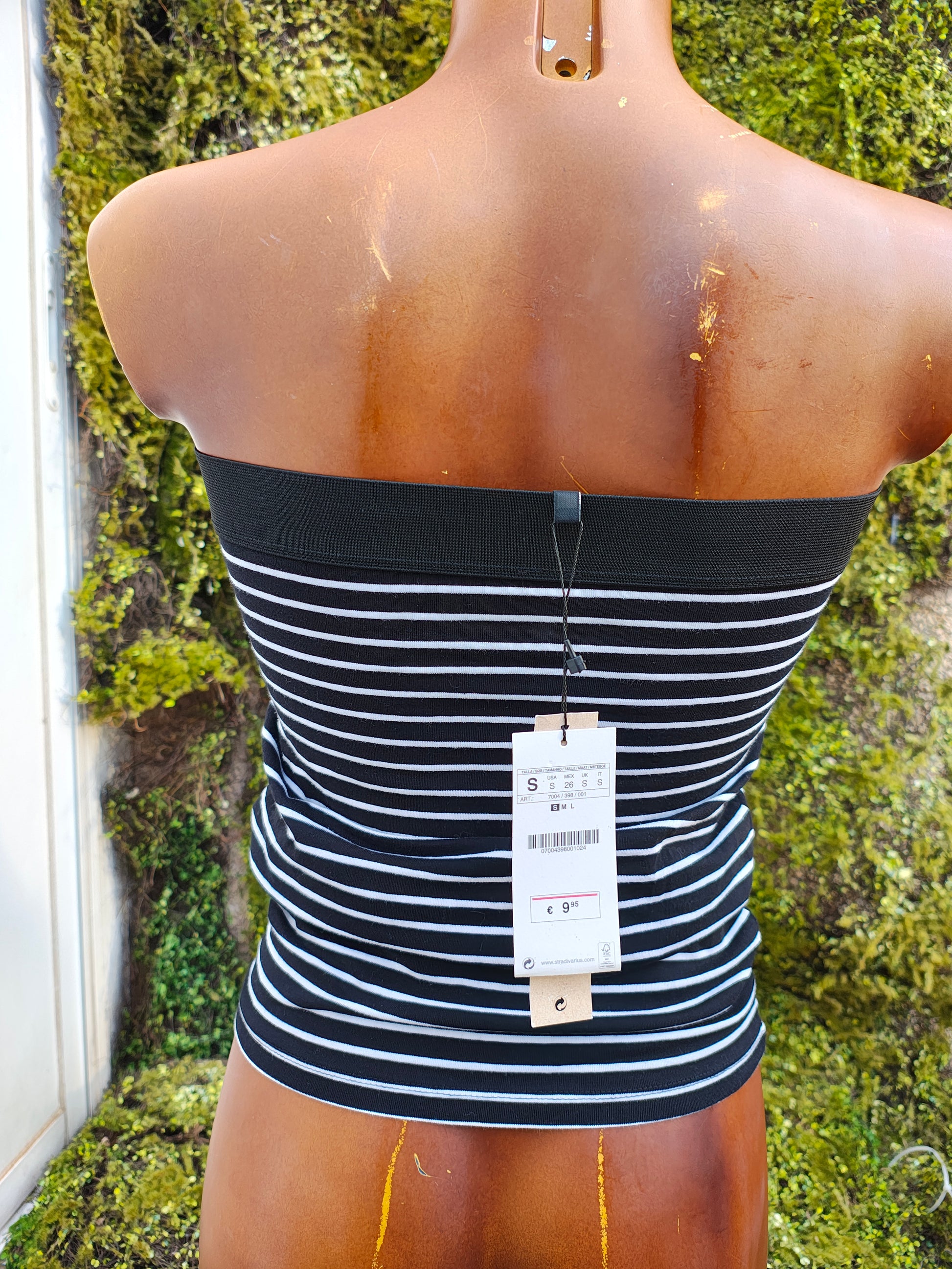 🖤 Haut bandeau sans bretelles avec motif rayé noir et blanc.