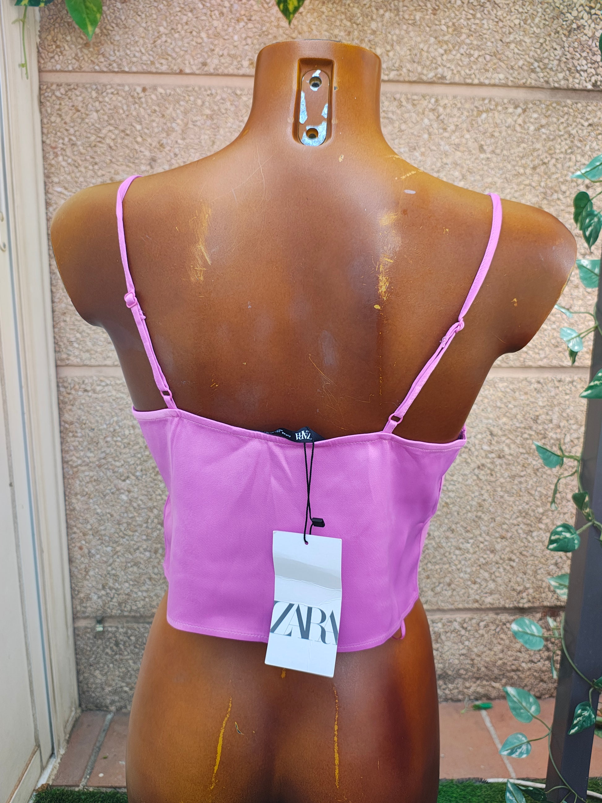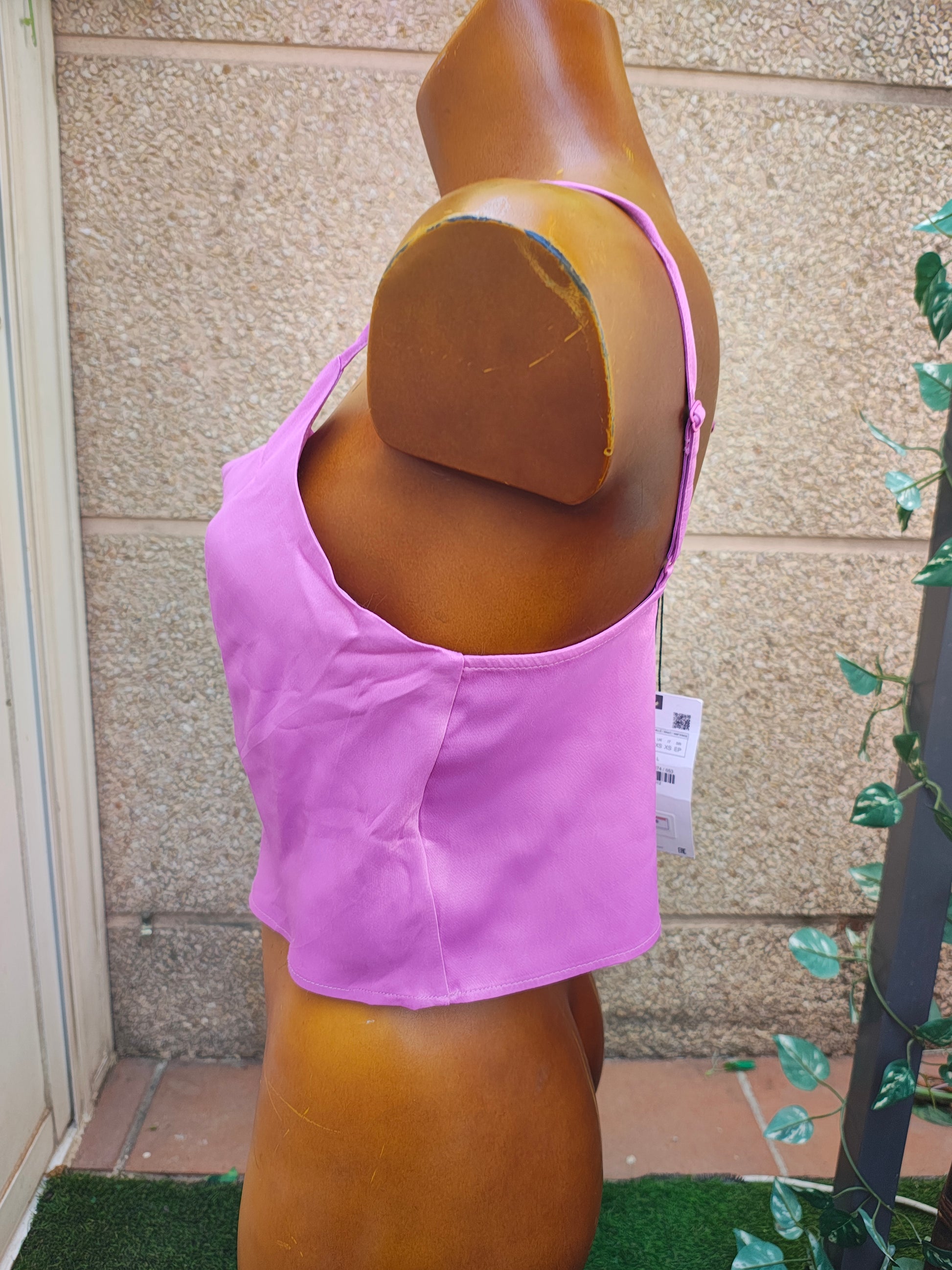 NOUVEAU – Top en satin rose fuchsia à décolleté drapé de ZARA (Taille XS)