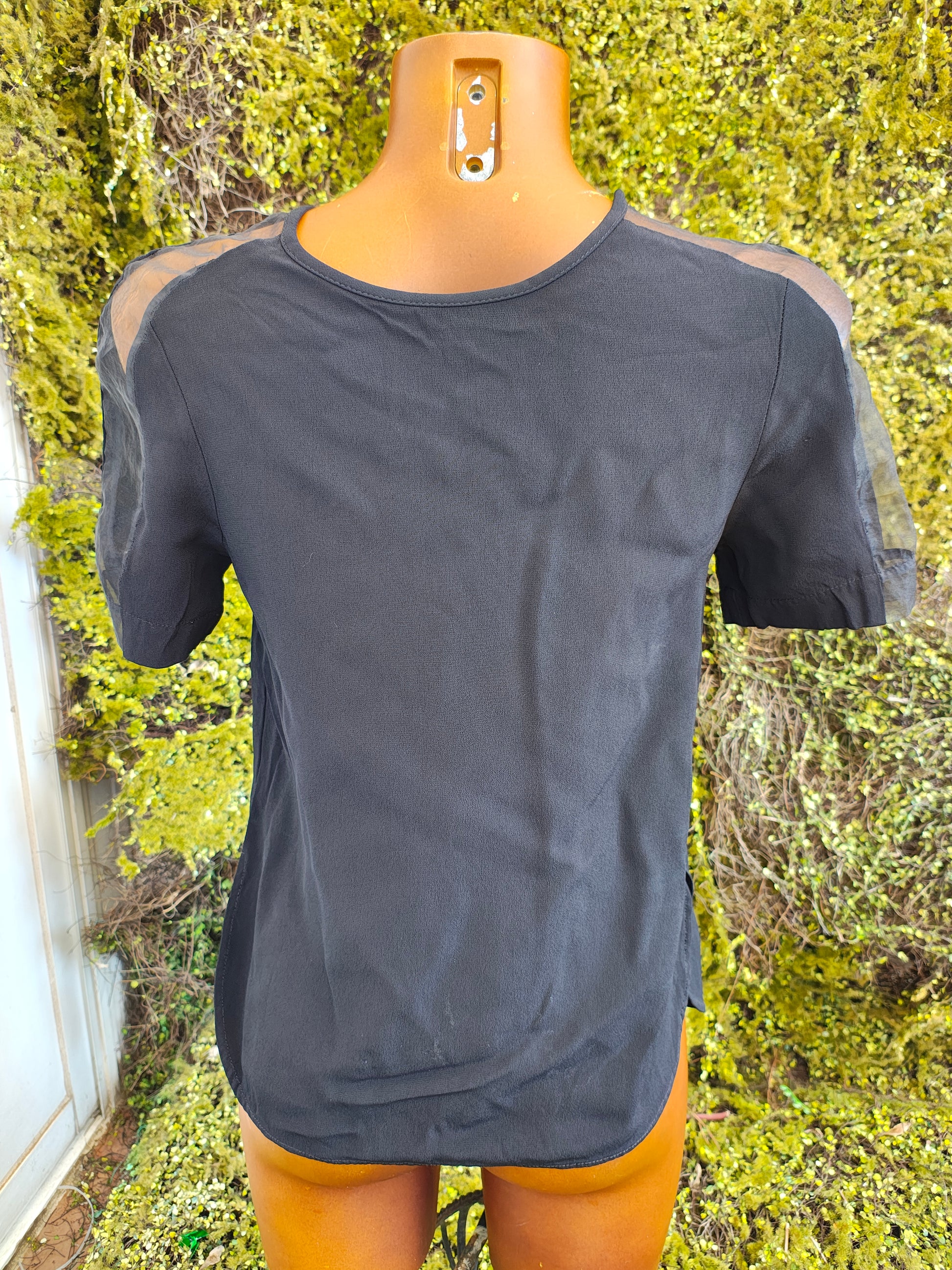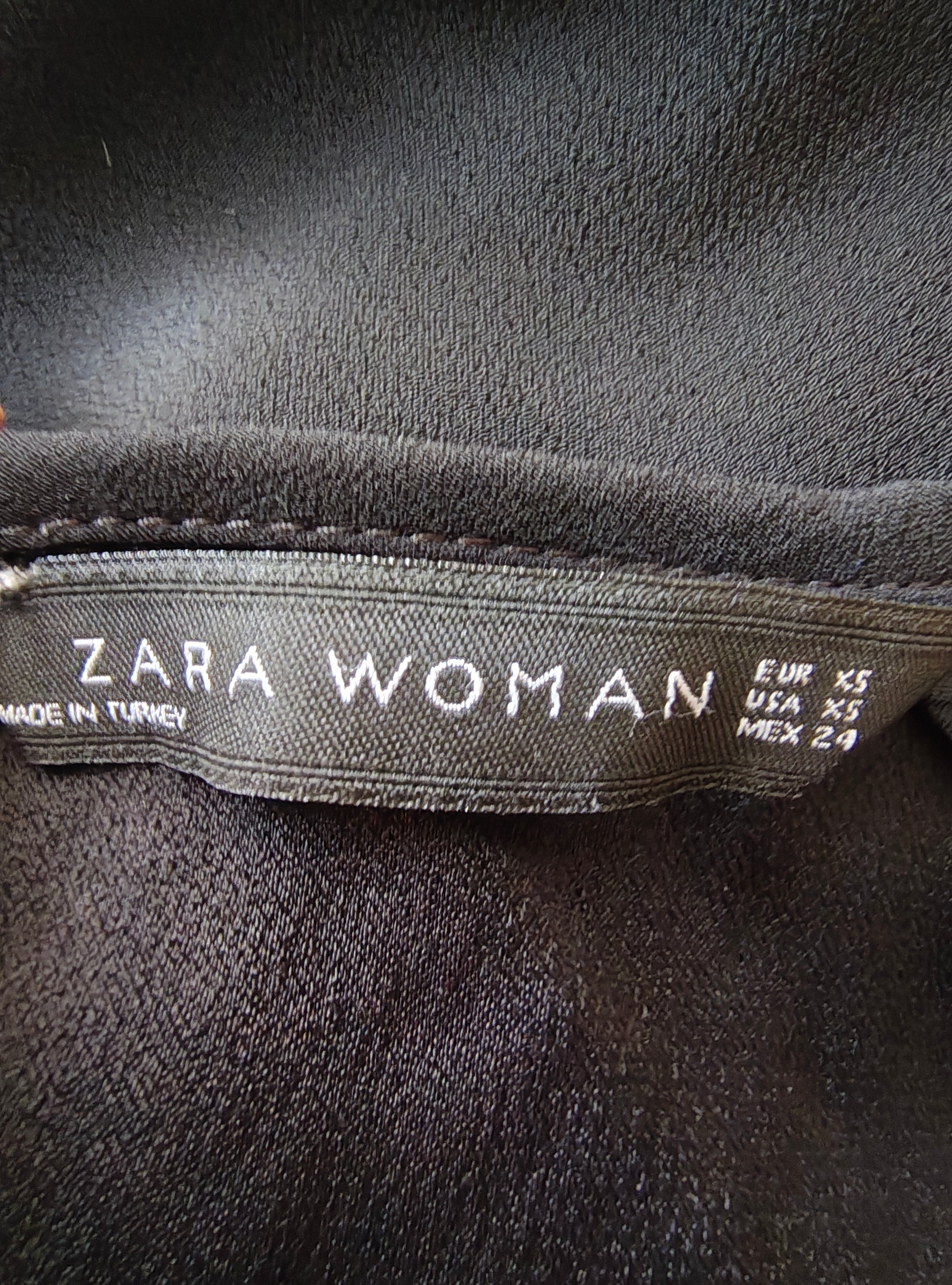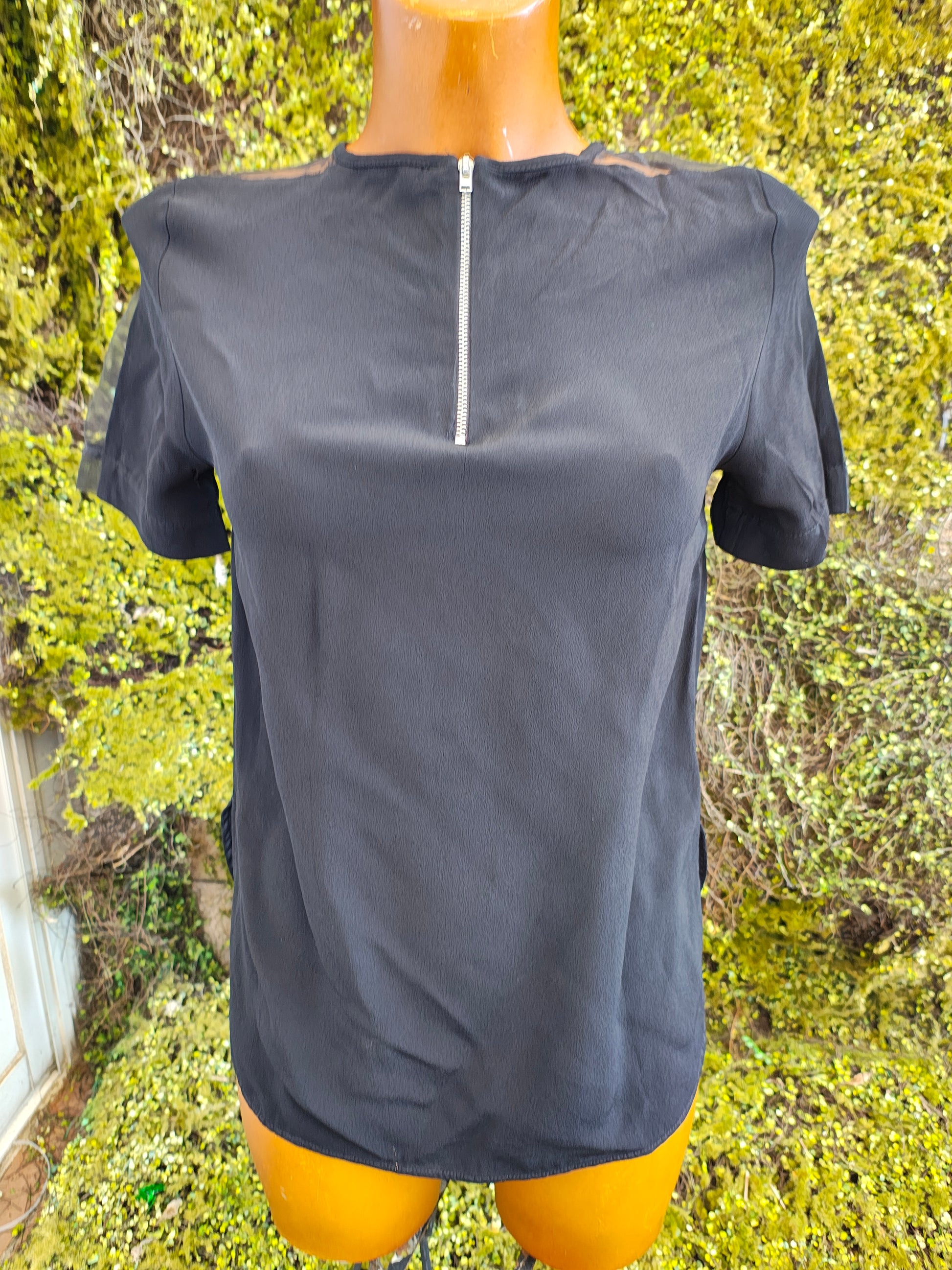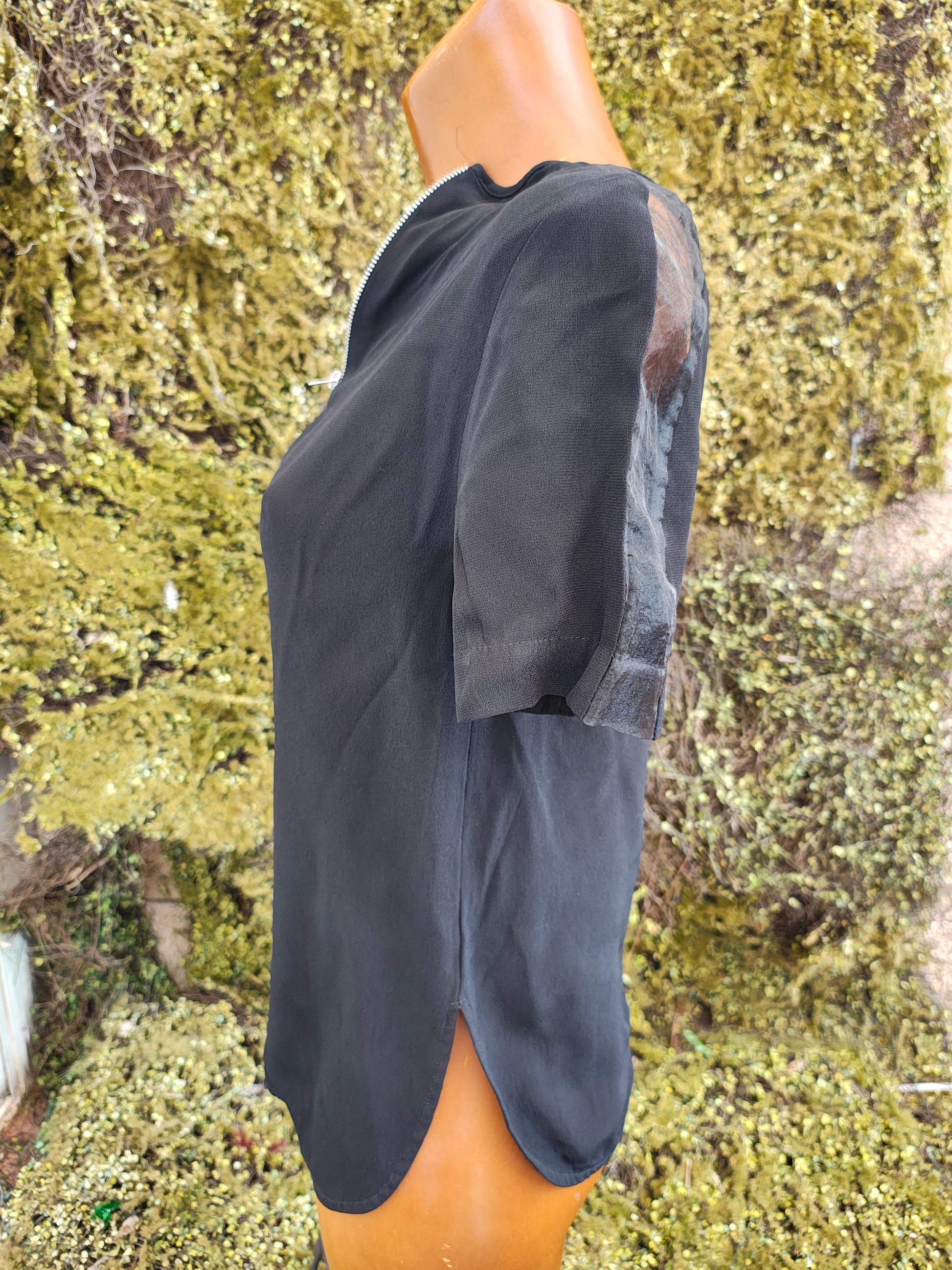 D'OCCASION – Chemisier noir avec fermeture éclair sur le devant et manches semi-transparentes par ZARA WOMAN (Taille EUR XS)