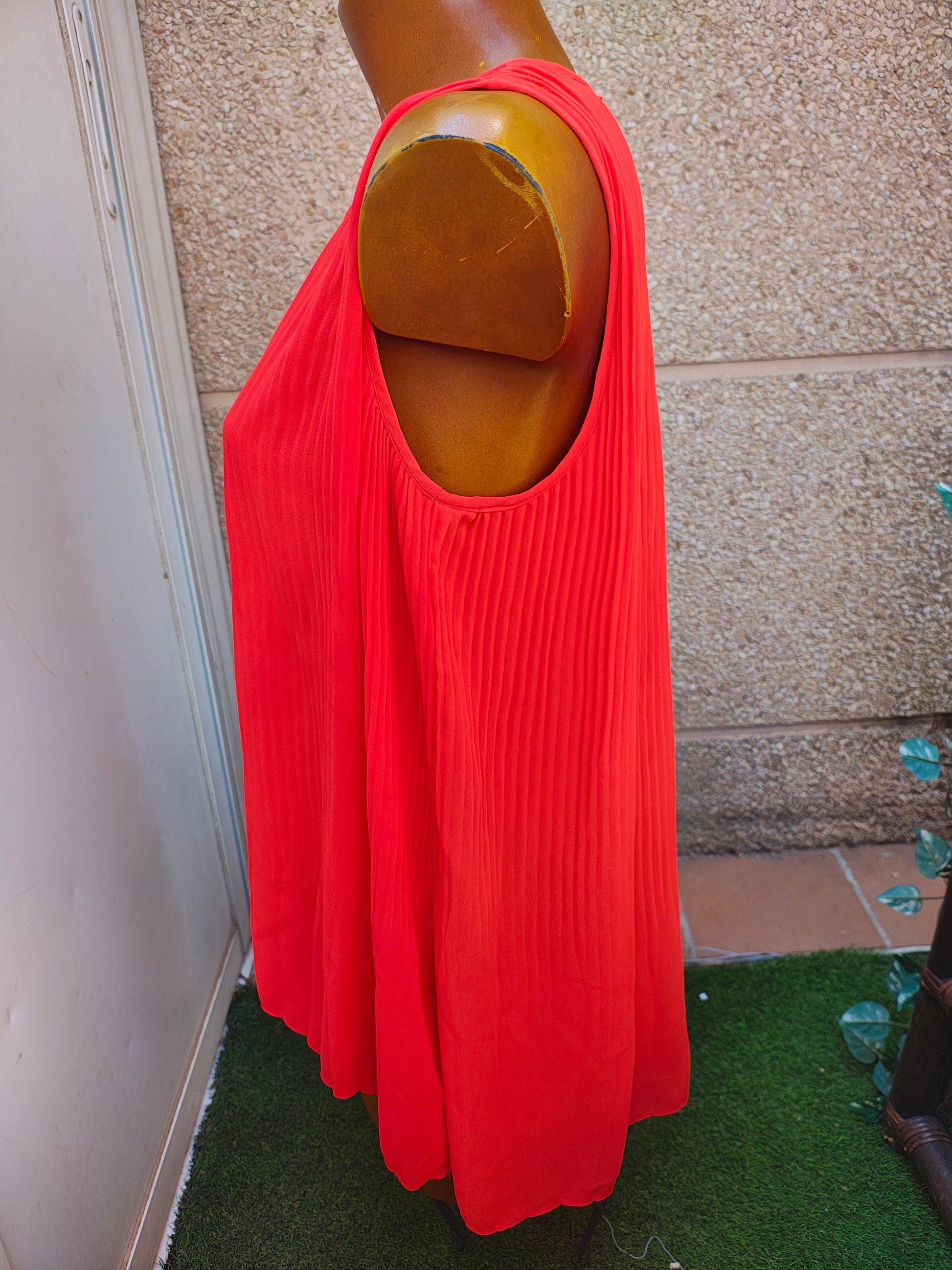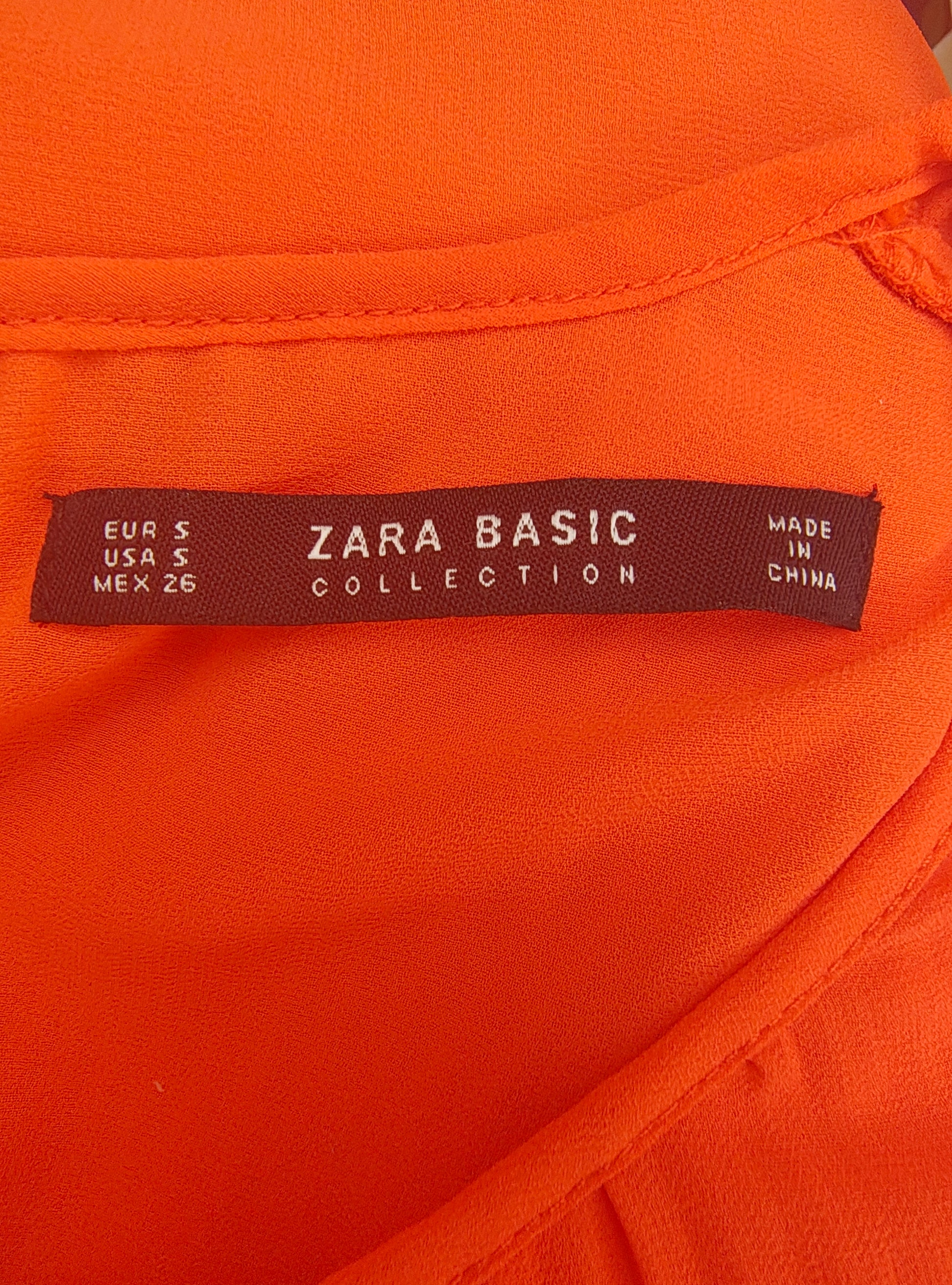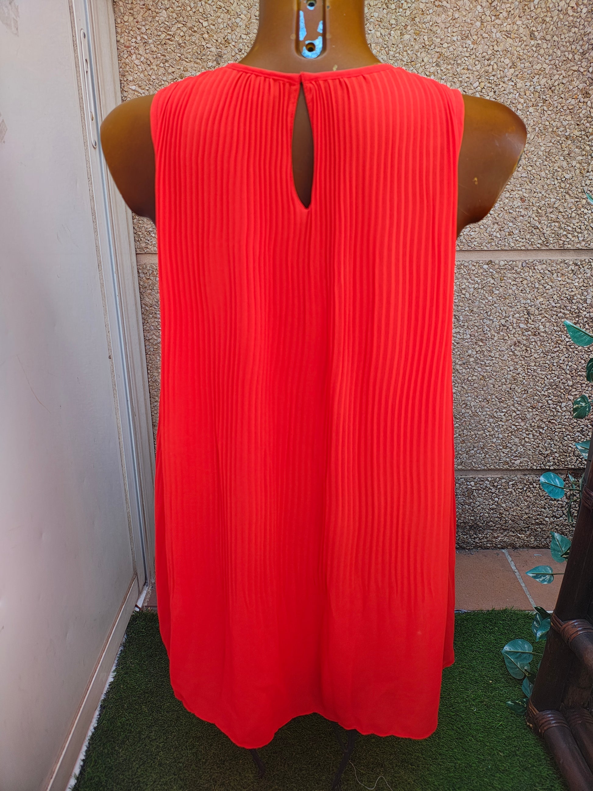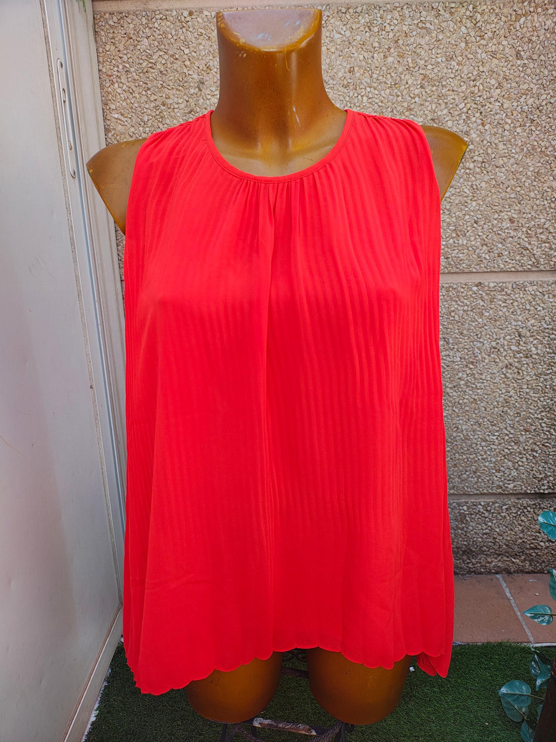 USADO – Blusa plisada sin mangas color naranja ZARA BASIC (Talla S)