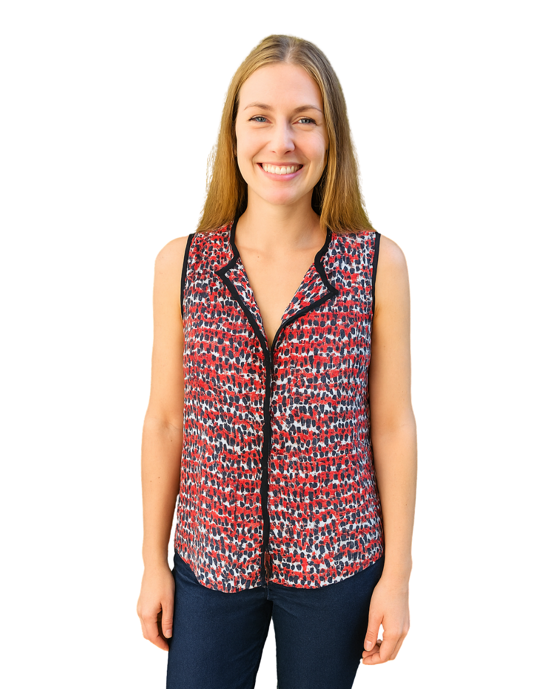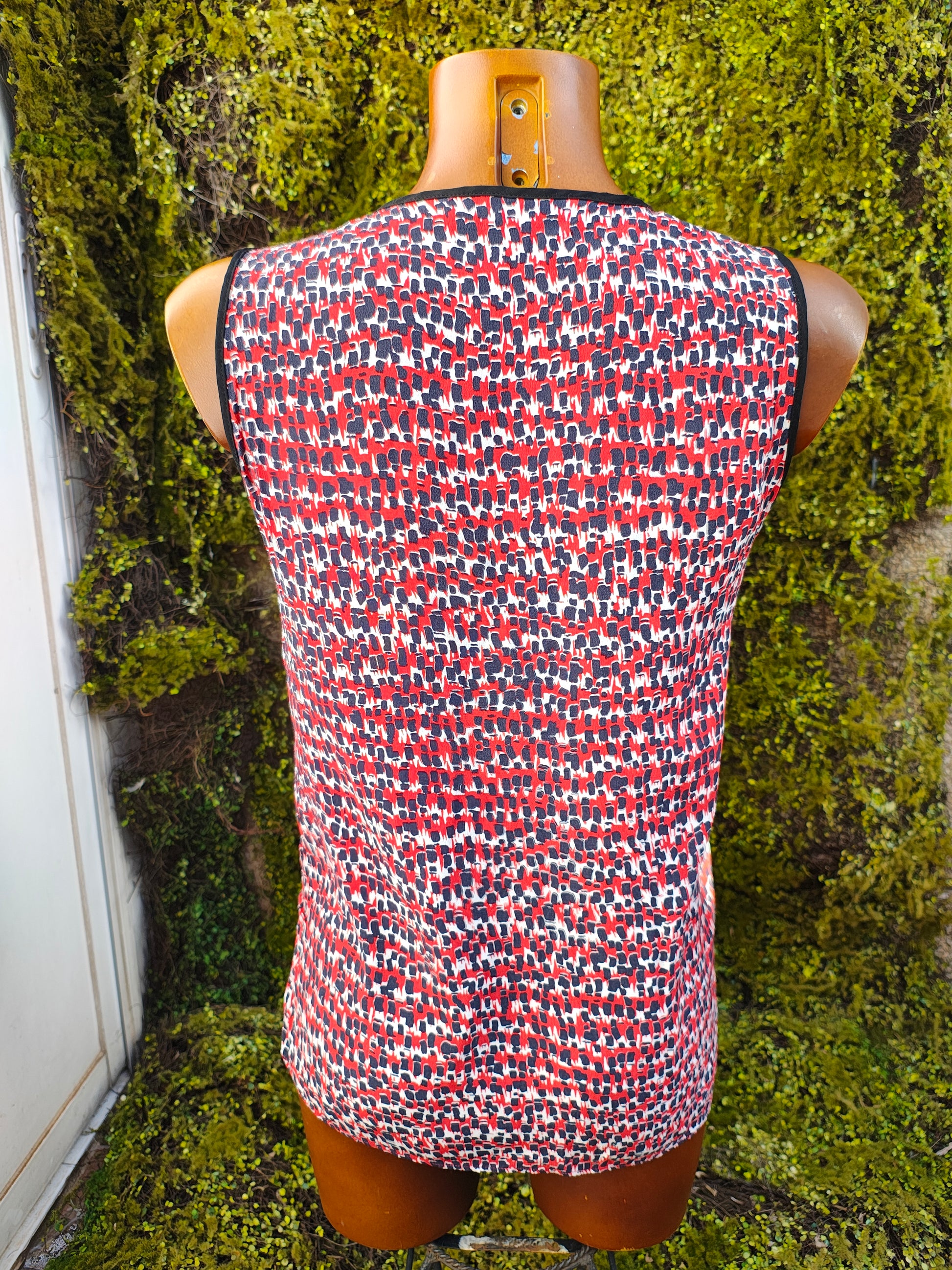 ❤️ Chemisier sans manches en tissu léger, imprimé animal en rouge, noir et blanc.