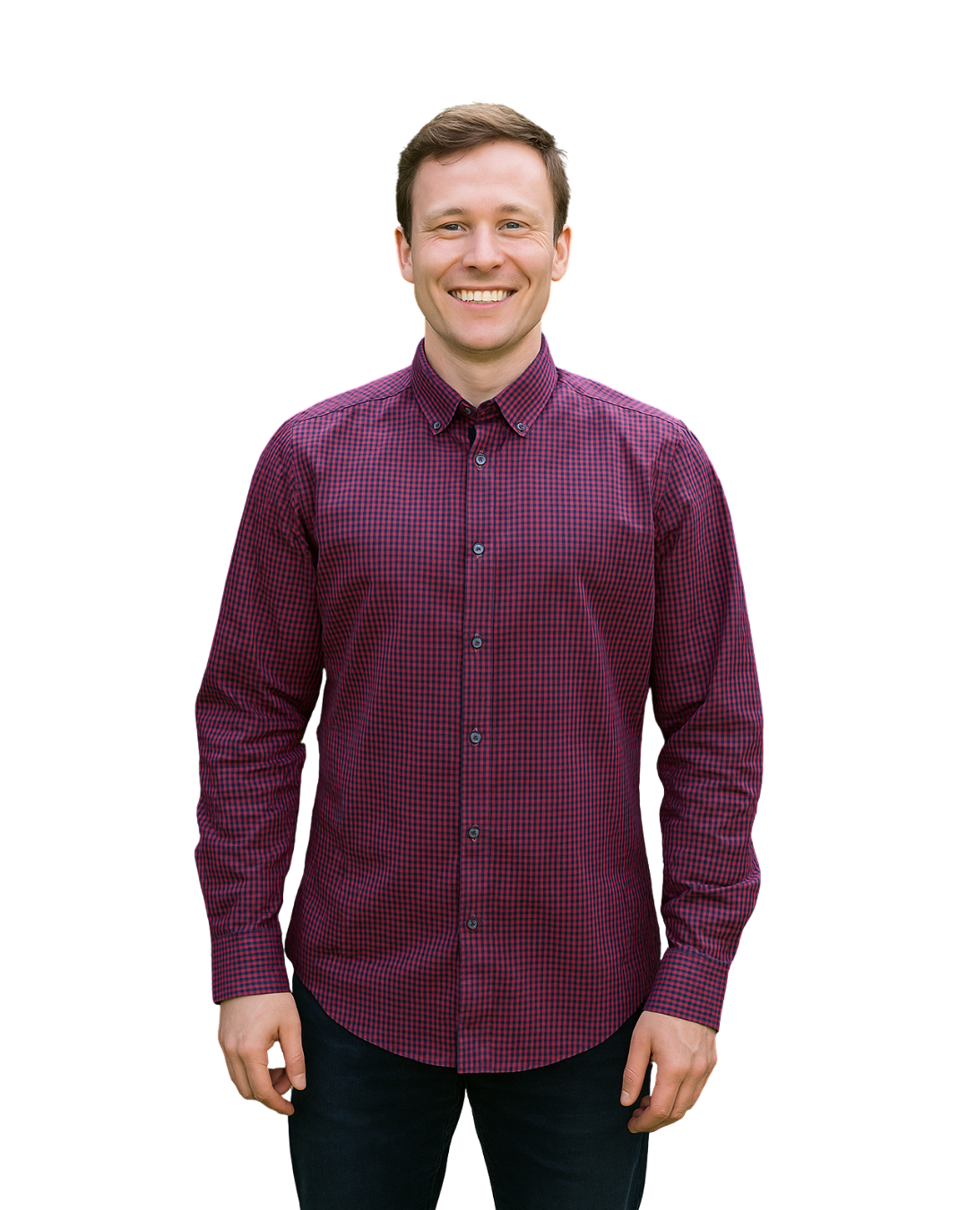 Camisa de manga larga en patrón de cuadros pequeños en tonos burdeos y azul marino, confeccionada en mezcla de algodón con un toque de elastano para mayor comodidad (98% algodón, 2% elastano). Corte Superslim Fit que realza la figura, con cuello abotonado y cierre frontal de botones. Ideal para un look moderno y ajustado, perfecta para combinar con vaqueros o pantalones de vestir.