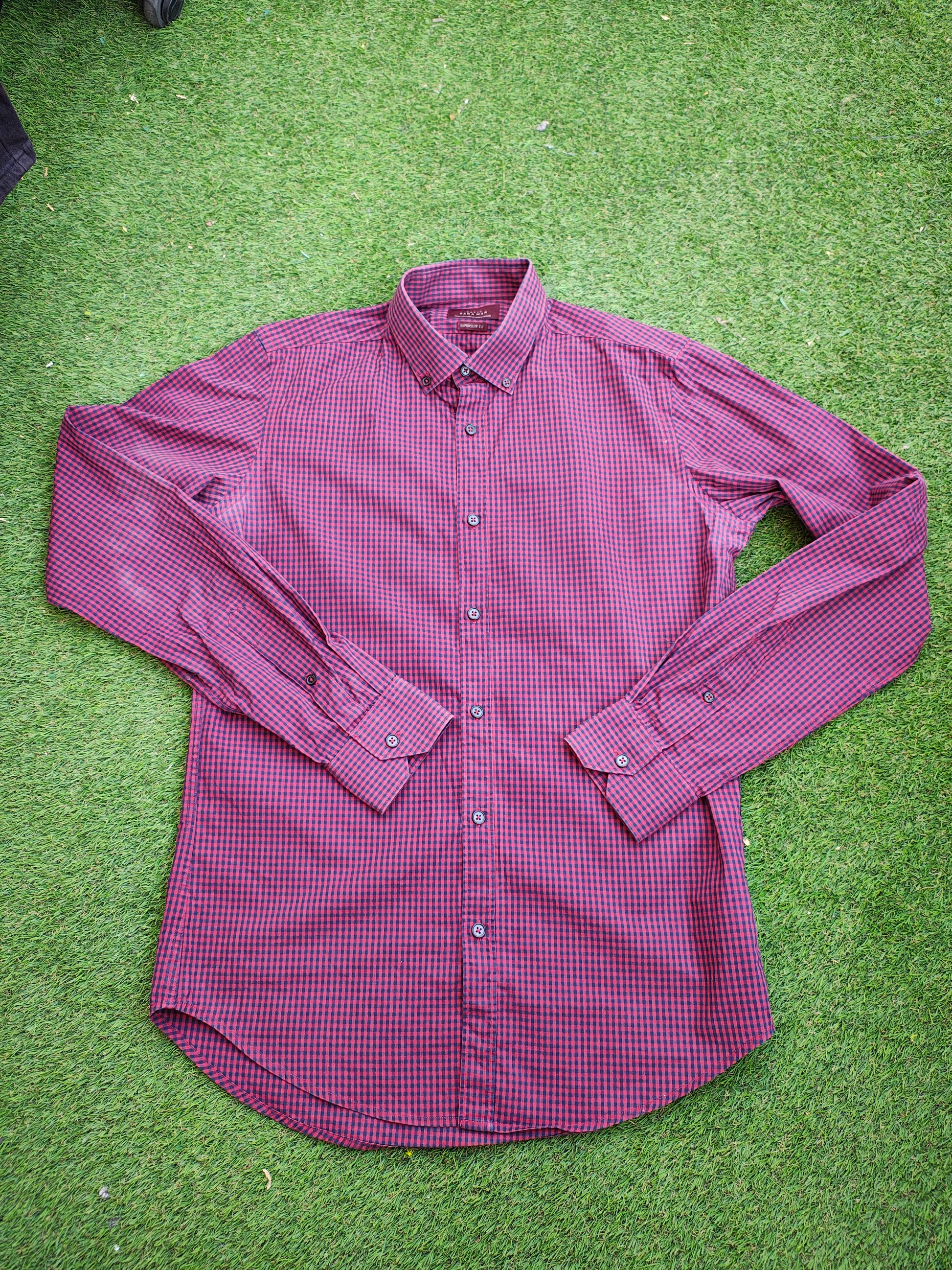 USADO – Camisa de cuadros burdeos y azul marino ZARA MAN Superslim Fit (Talla EUR M)