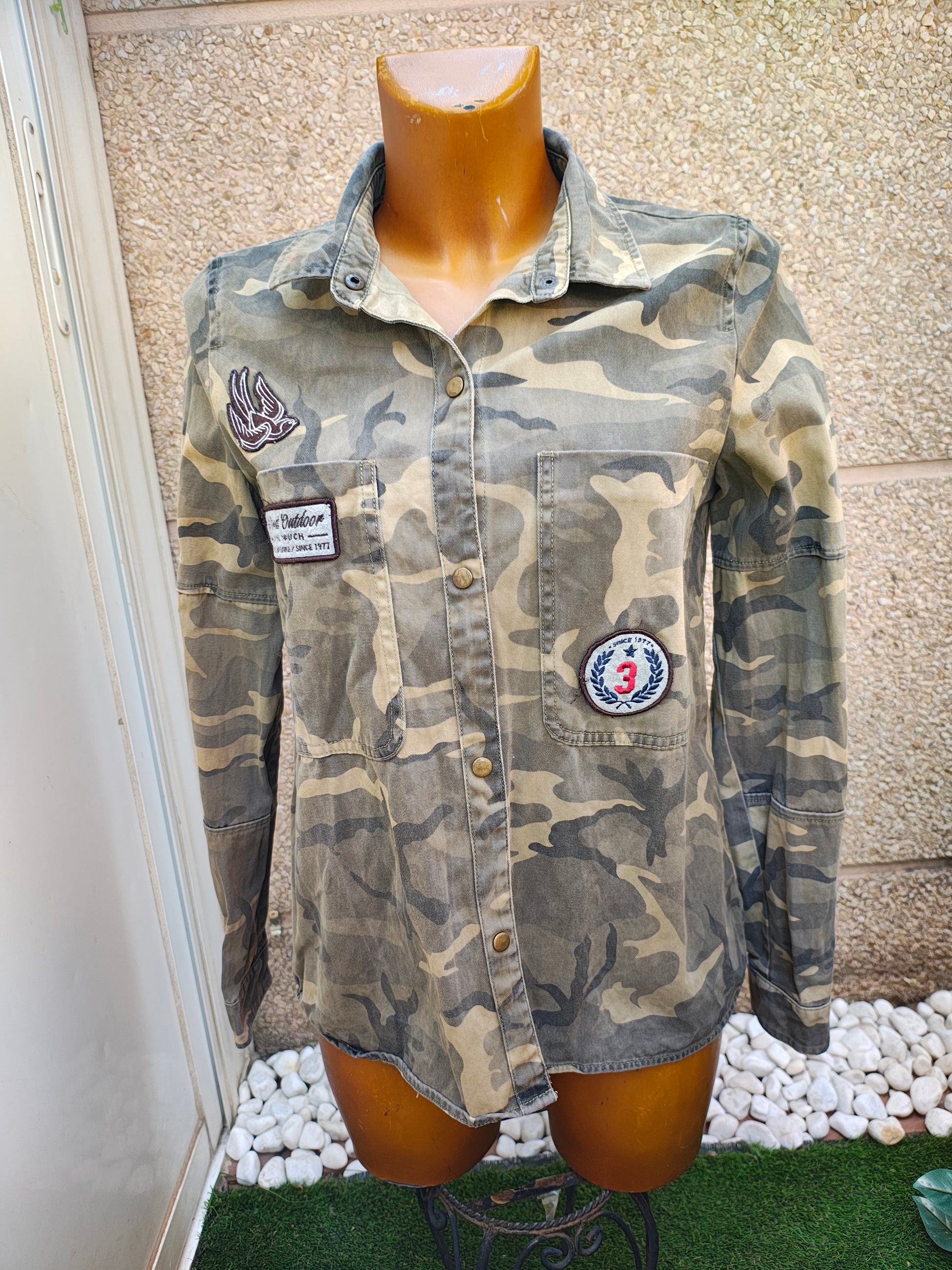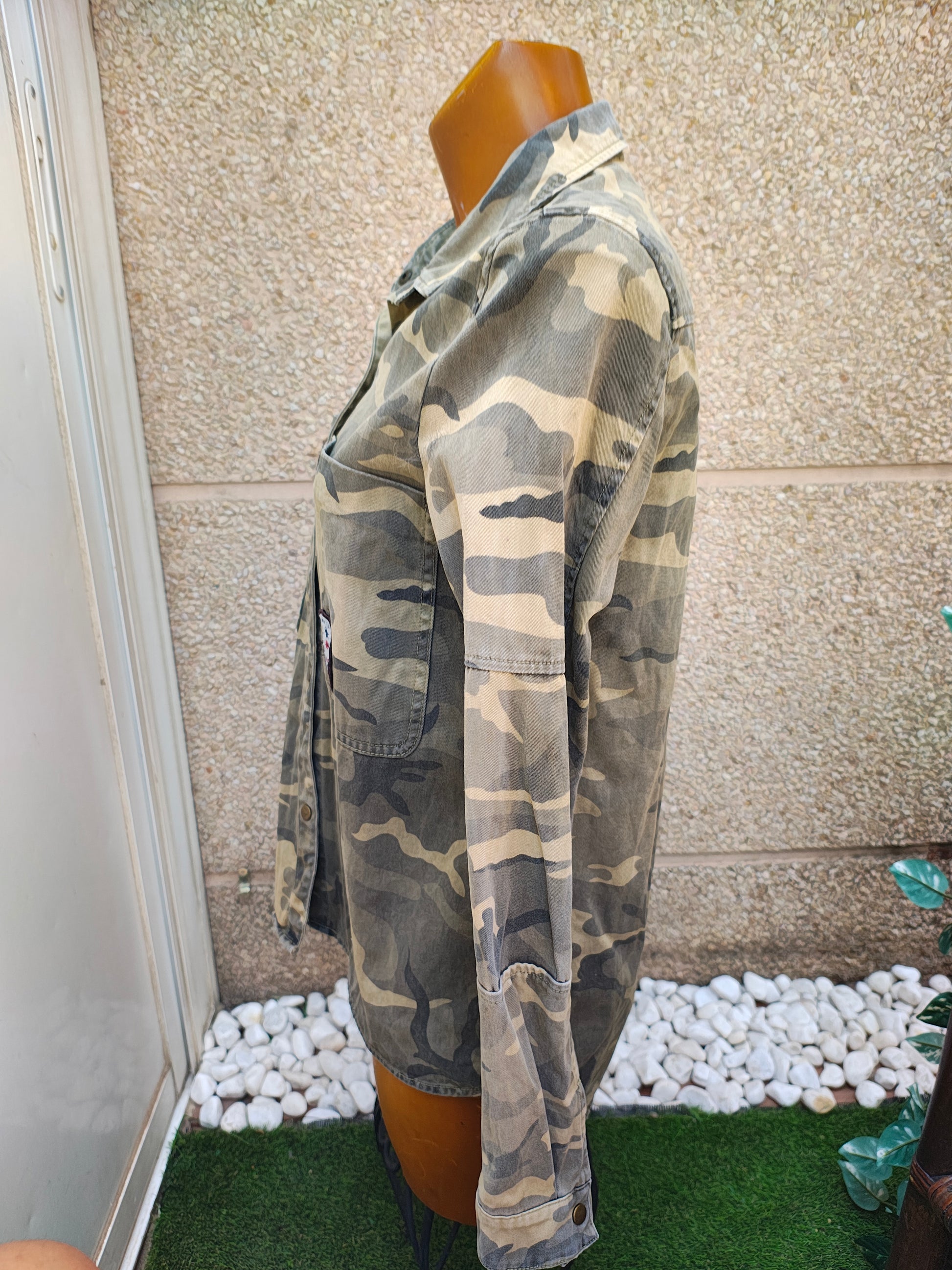 USADO – Camisa militar camuflaje con parches ZARA Trafaluc Outerwear Division (Talla S)