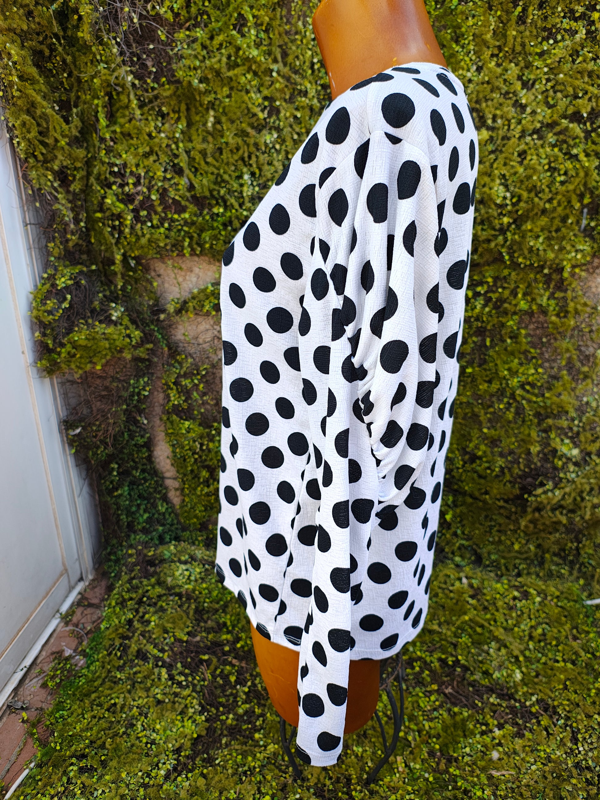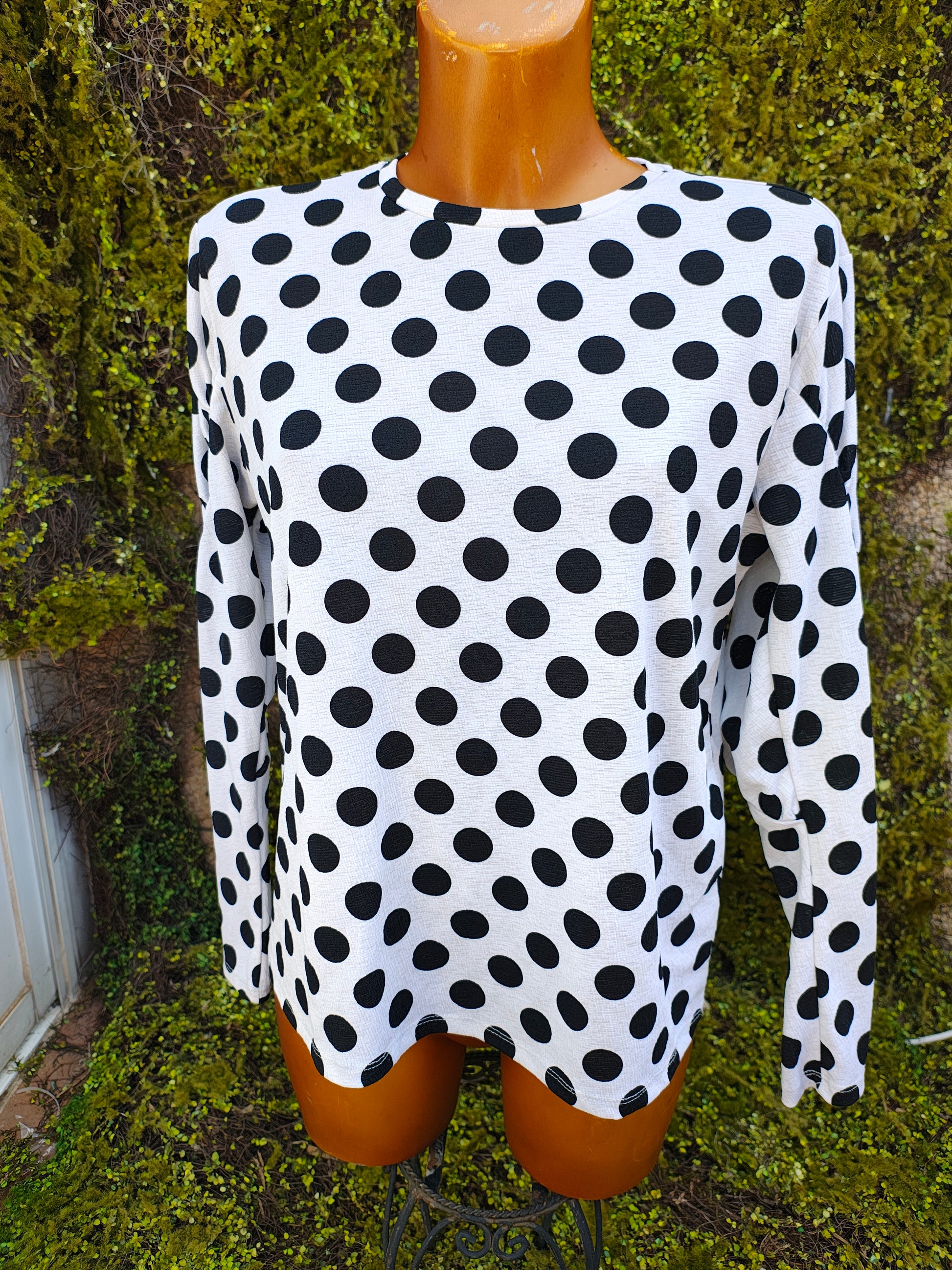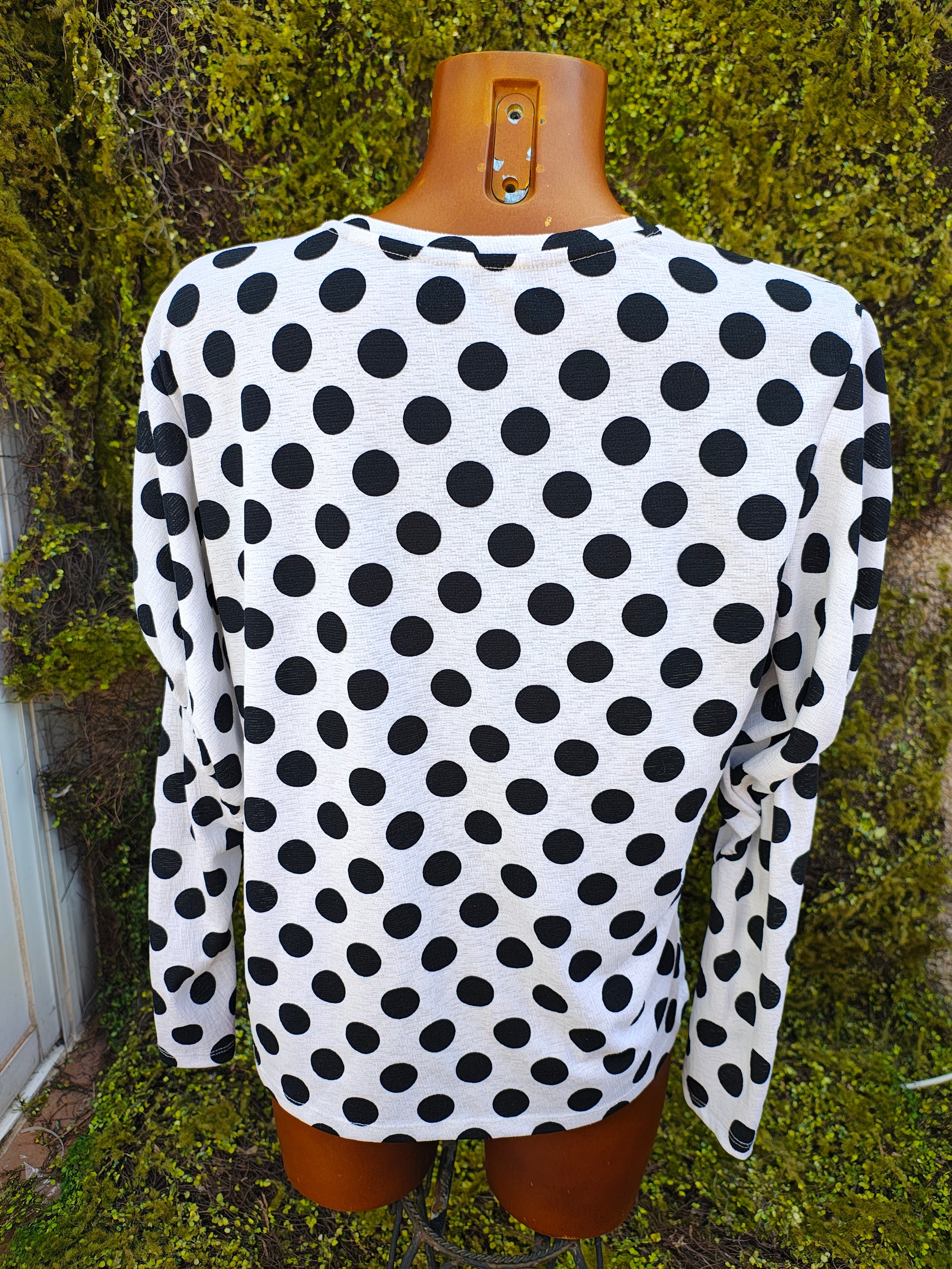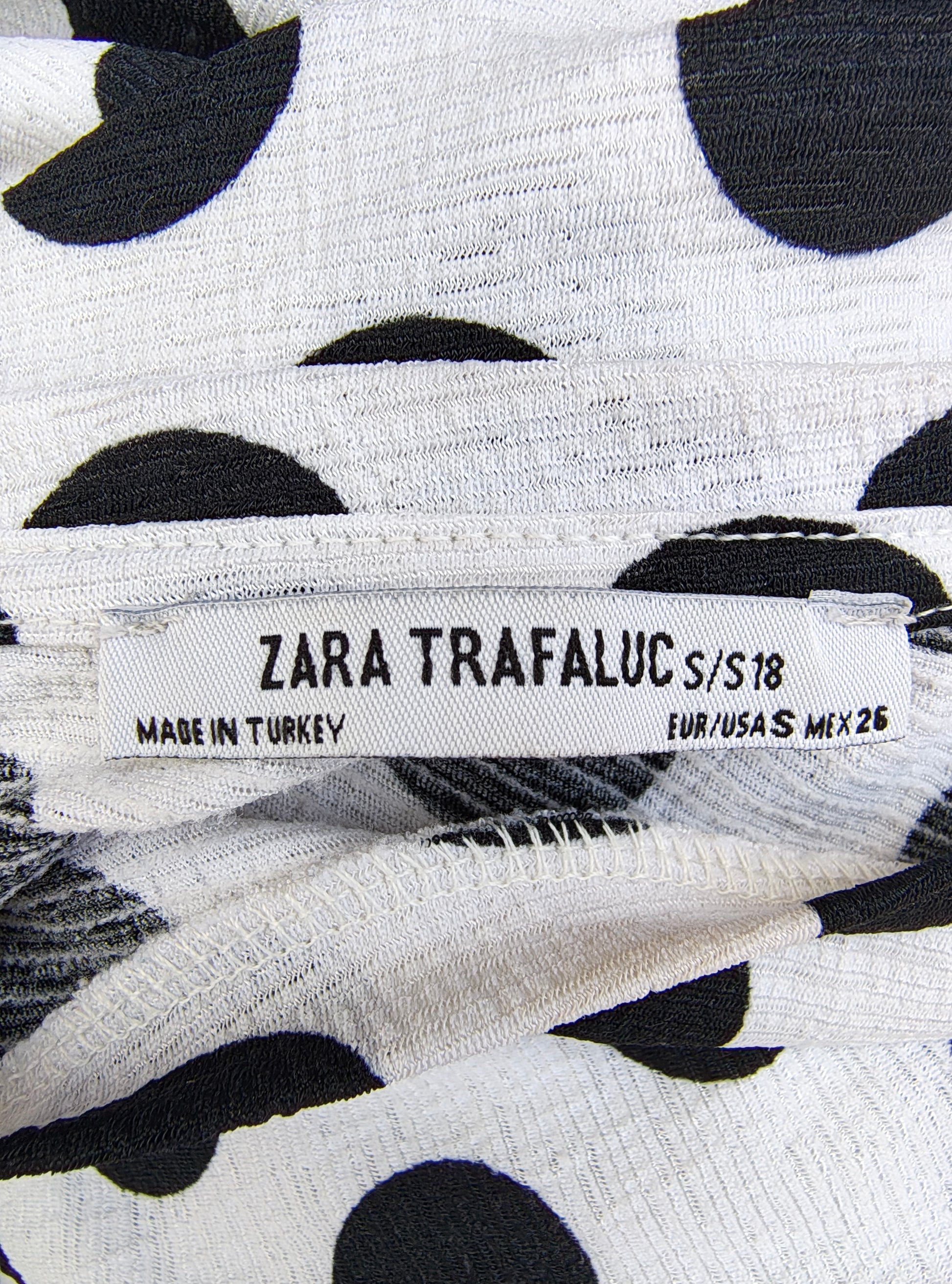 D'OCCASION – T-shirt Trafaluc Zara en maille blanche à pois noirs (Taille EUR S / USA S / MEX 26)