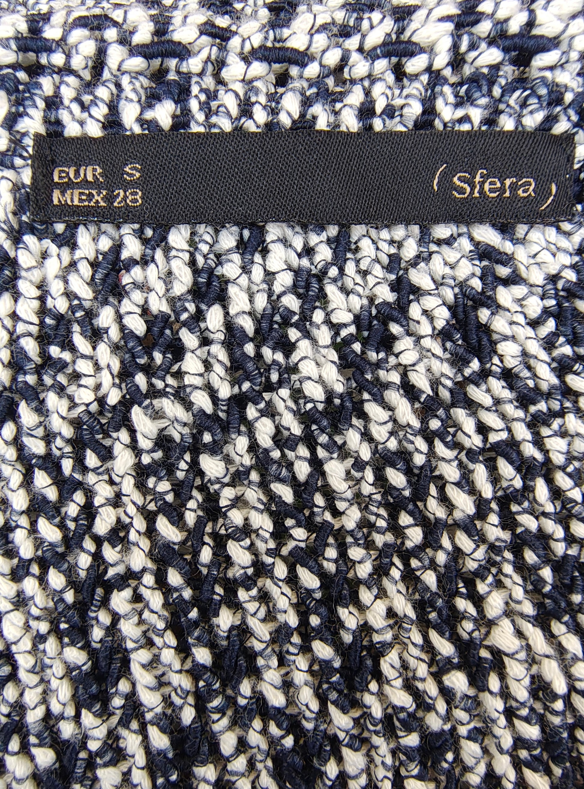 USADO – Cárdigan jaspeado blanco y azul marino tipo tweed de SFERA (Talla S)
