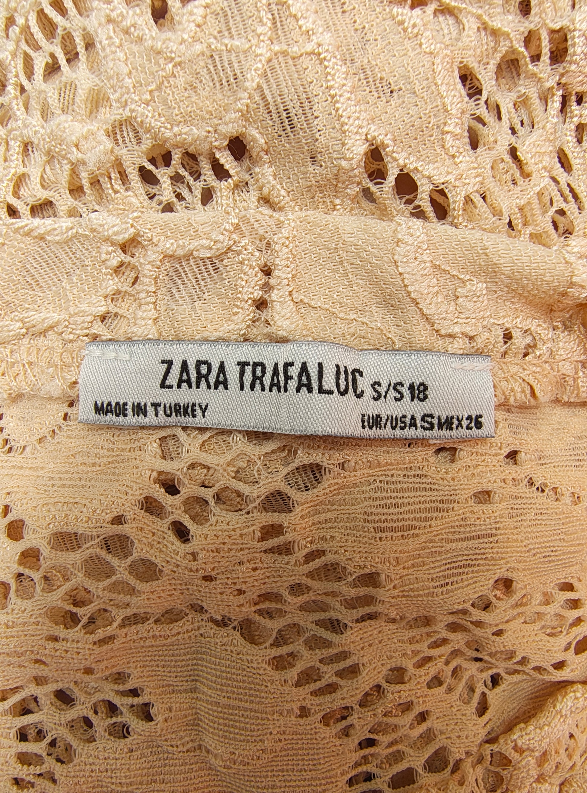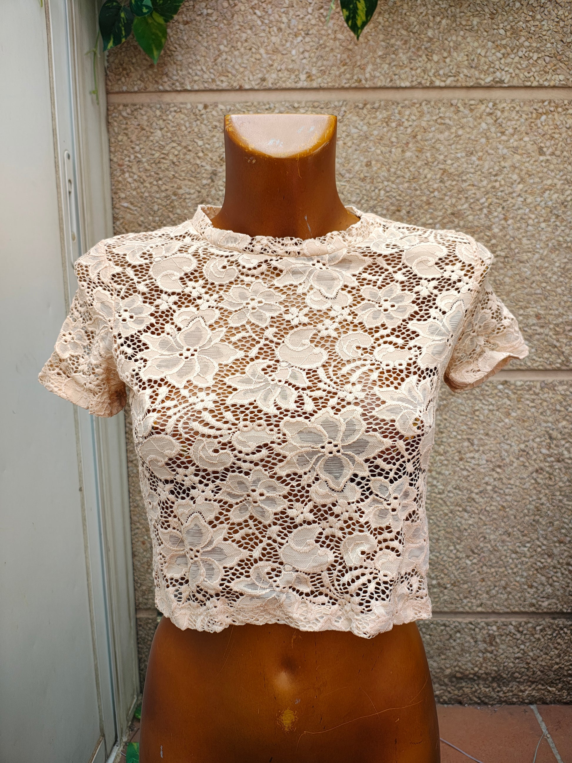 USADO – Crop top calado en encaje floral beige Zara Trafaluc (Talla S)