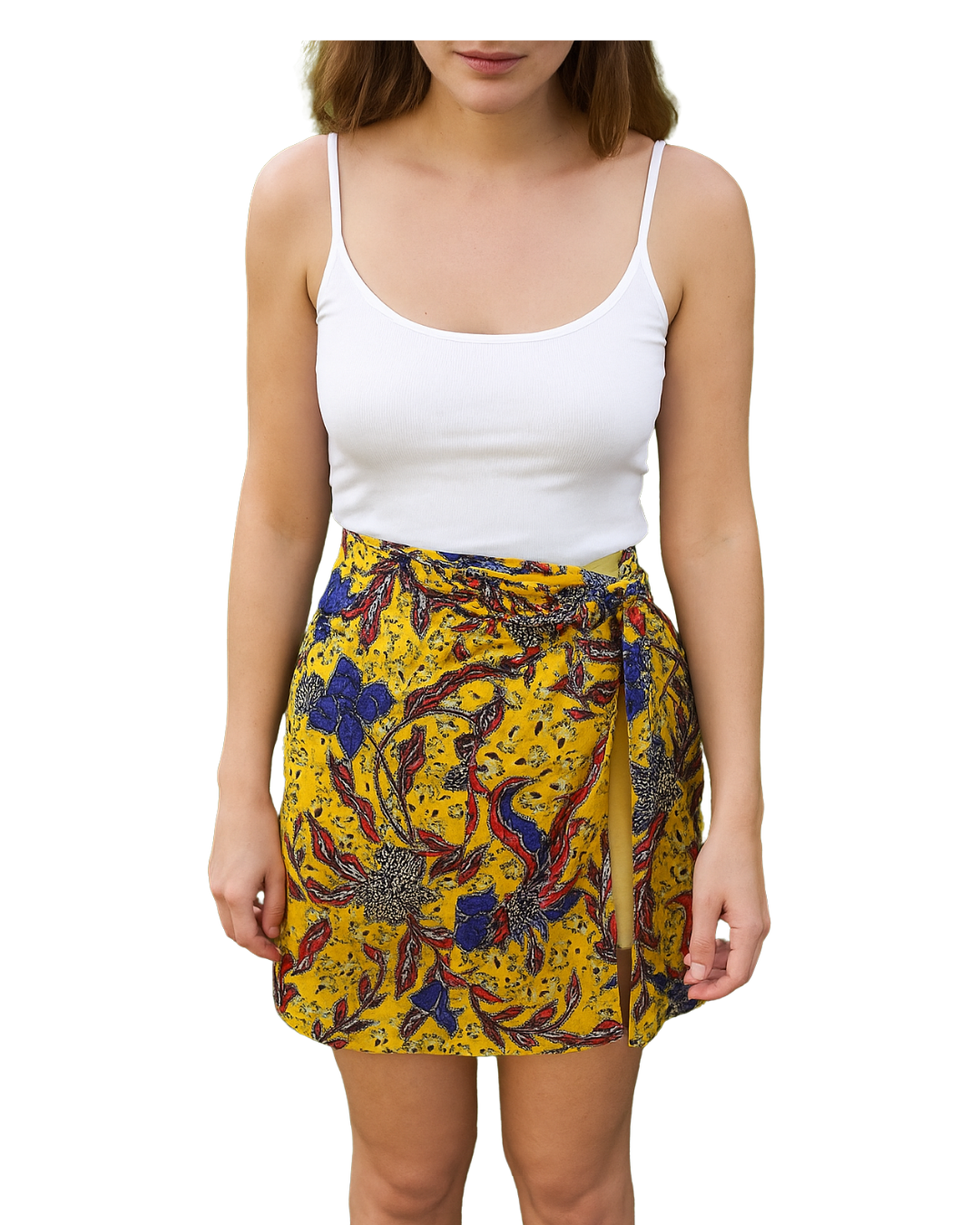 💫 Falda corta de MNG Collection con estampado étnico multicolor en tonos rojos, verdes, naranjas y azules. Tejido con algodón y elastano que aporta comodidad y ligero ajuste al cuerpo. Cuenta con cierre lateral y forro interior que asegura un acabado de calidad.