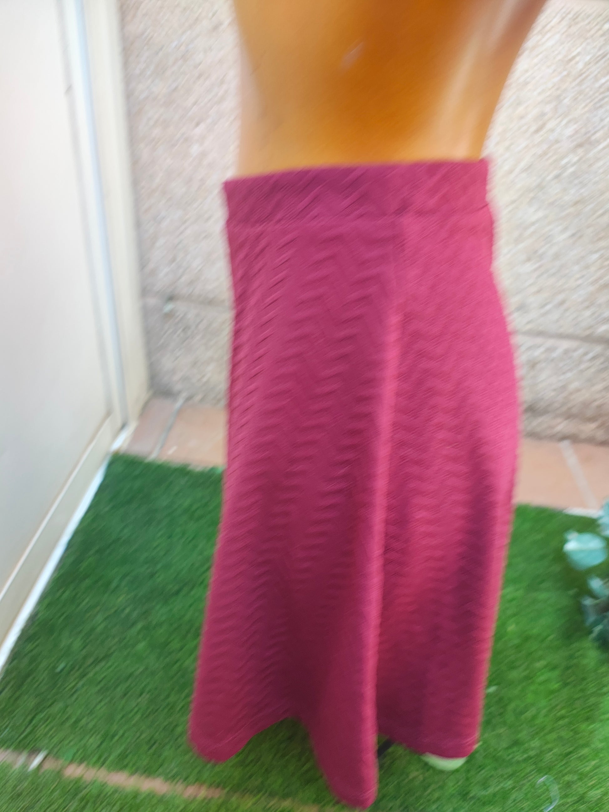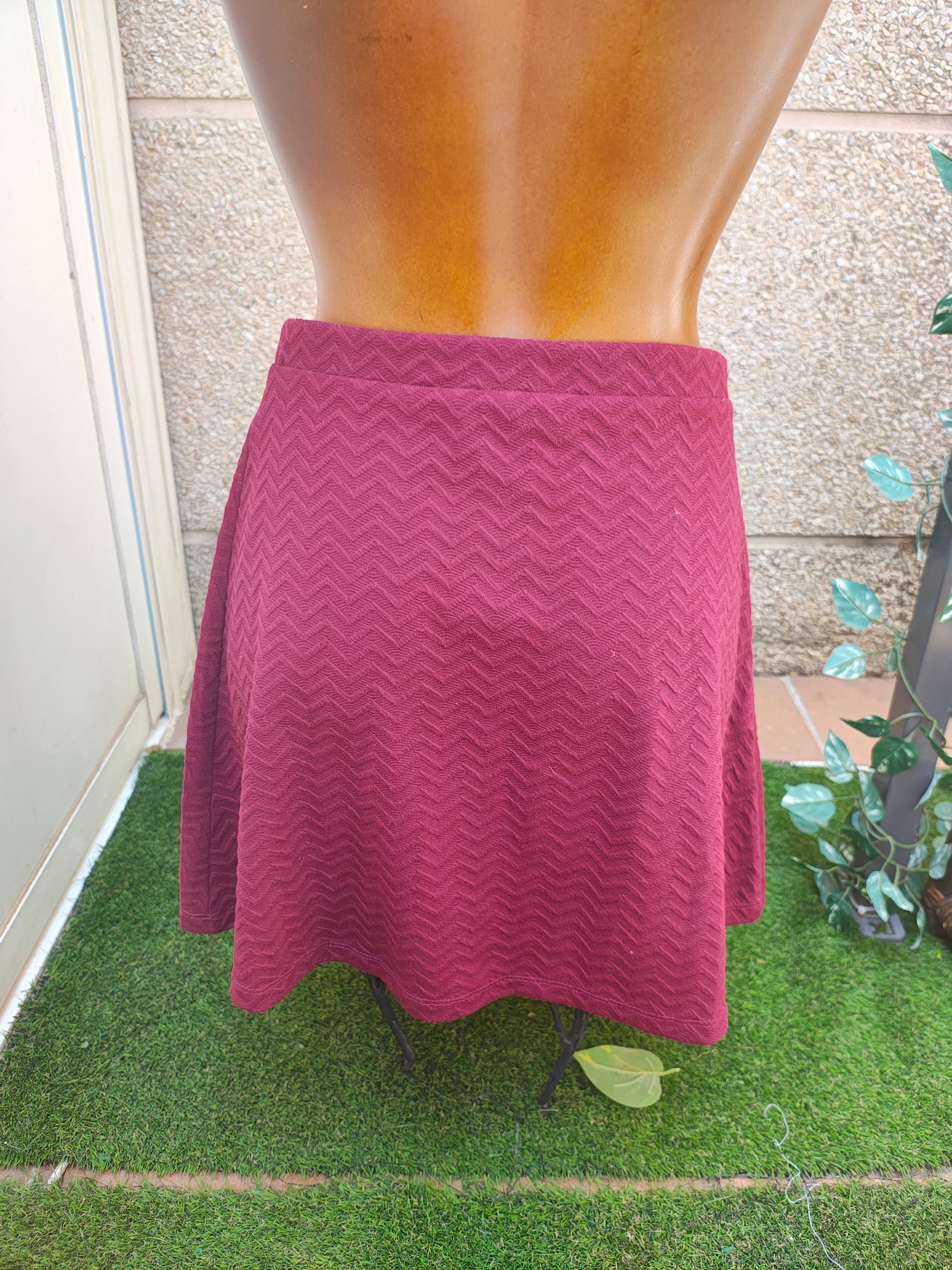 D'OCCASION – Jupe patineuse bordeaux texturée en zigzag MANGO Basics (taille S)