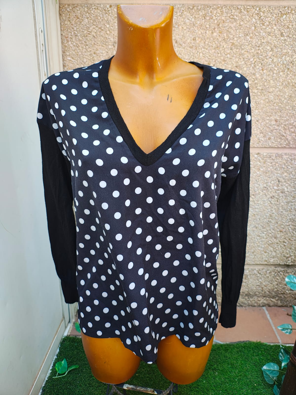 USADO –Blusa negro de lunares blancos ZARA KNIT (Talla S)