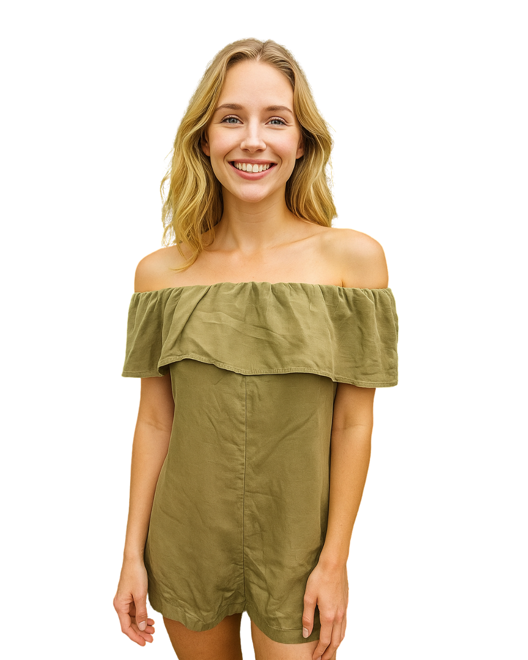 Combinaison bustier avec un volant sur le haut qui entoure tout le décolleté, lui donnant une allure féminine et estivale. Design simple, frais et droit avec un élastique sur le haut pour un ajustement confortable. Parfaite pour les journées chaudes ou comme pièce principale d'un look bohème décontracté. 🌱 Confectionnée en tissu léger au toucher doux et au tombé naturel. 📏 Taille EUR M / USA M / MEX 28. 🌍 Fabriquée au Portugal. 🌟 Marque : ZARA WOMAN – Collection Premium Denim. 📦 Idéale à associer avec des sandales plates ou compensées, et des accessoires en fibres naturelles pour une tenue 100 % estivale. 👌 En très bon état, sans traces d'utilisation notables.