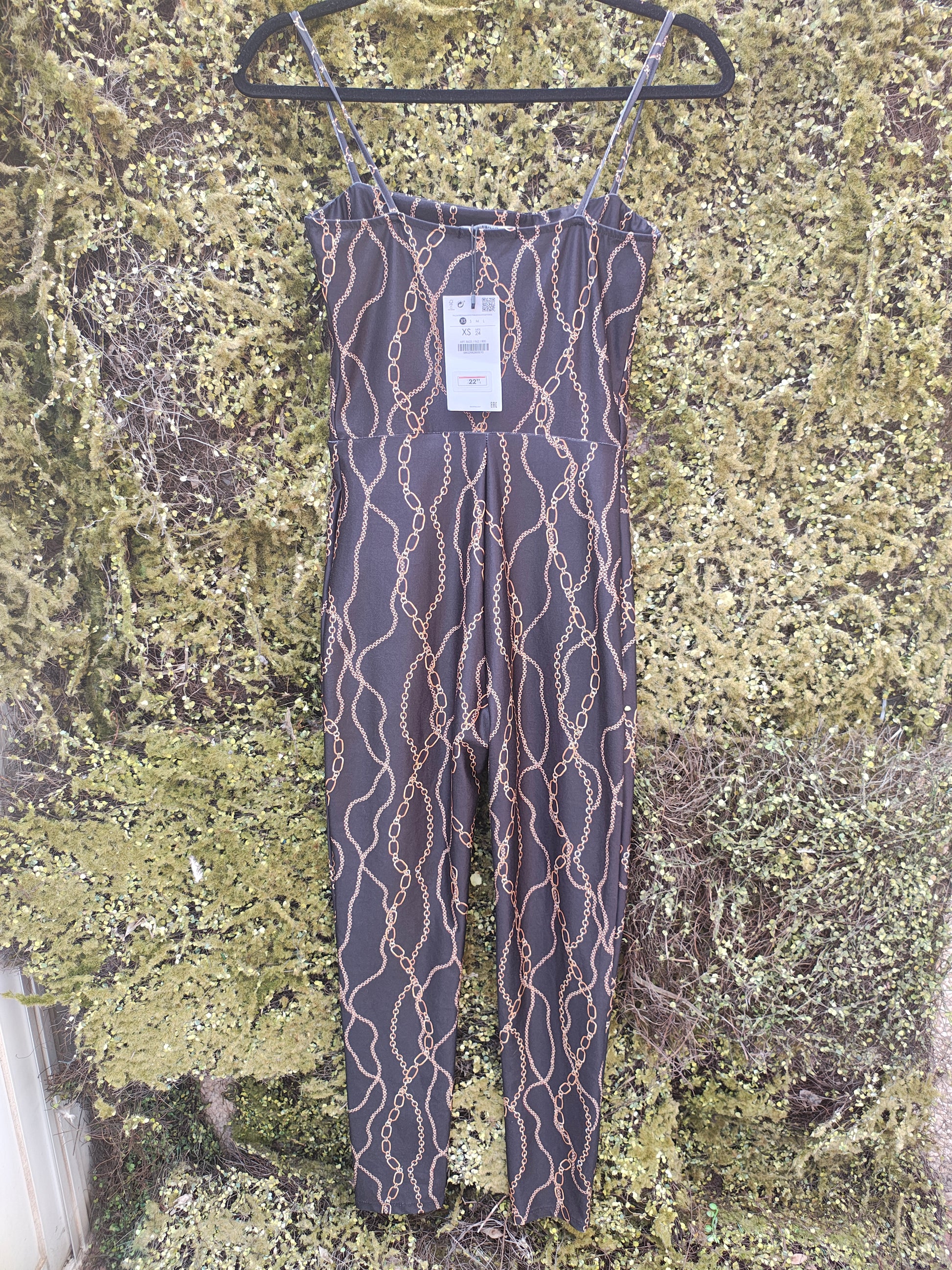 D'OCCASION – Combinaison noire à imprimé chaîne dorée de BERSHKA (taille S)