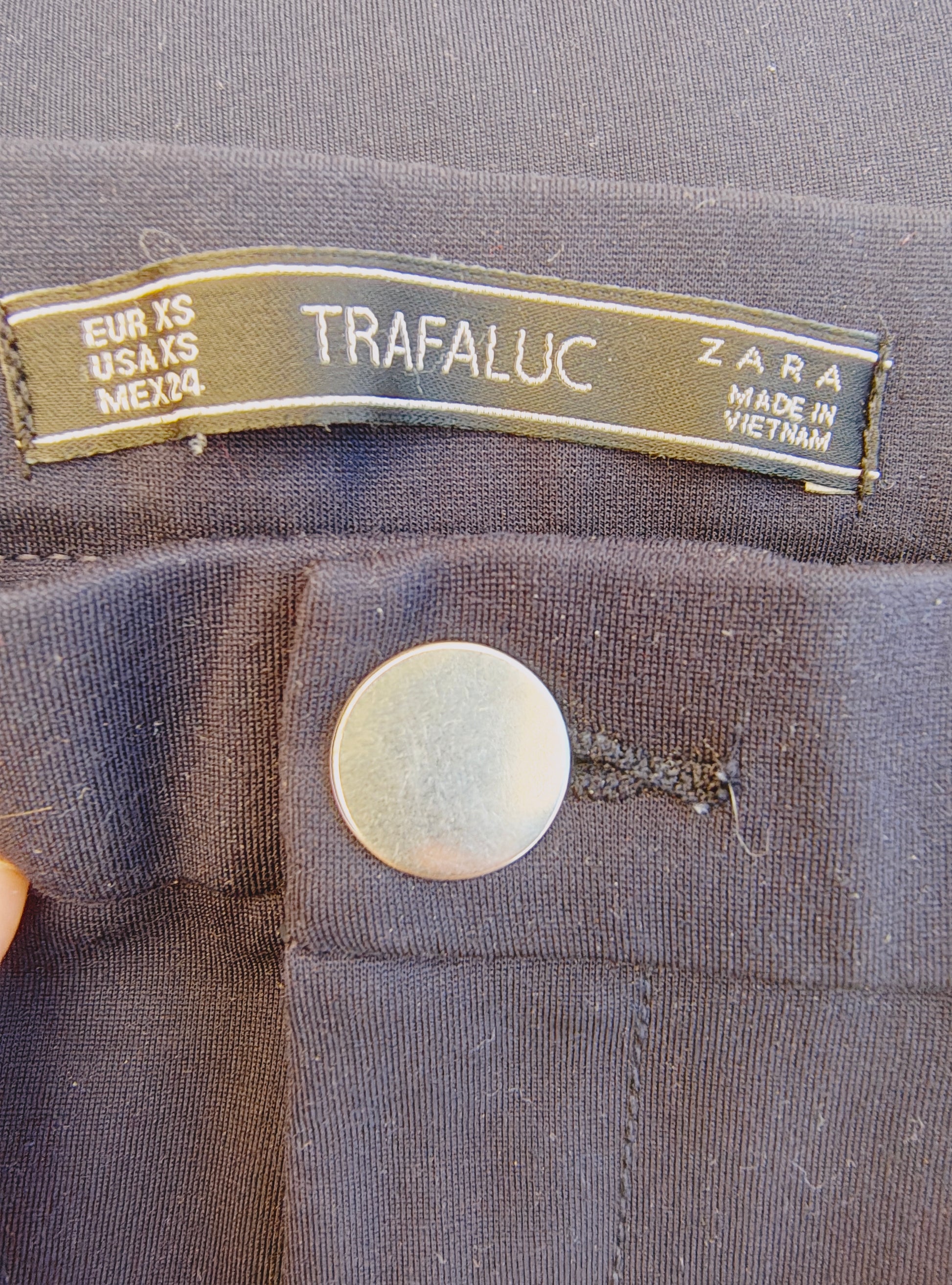 D'OCCASION – Pantalon motard extensible noir ZARA Trafaluc avec fermetures éclair (Taille EUR XS)