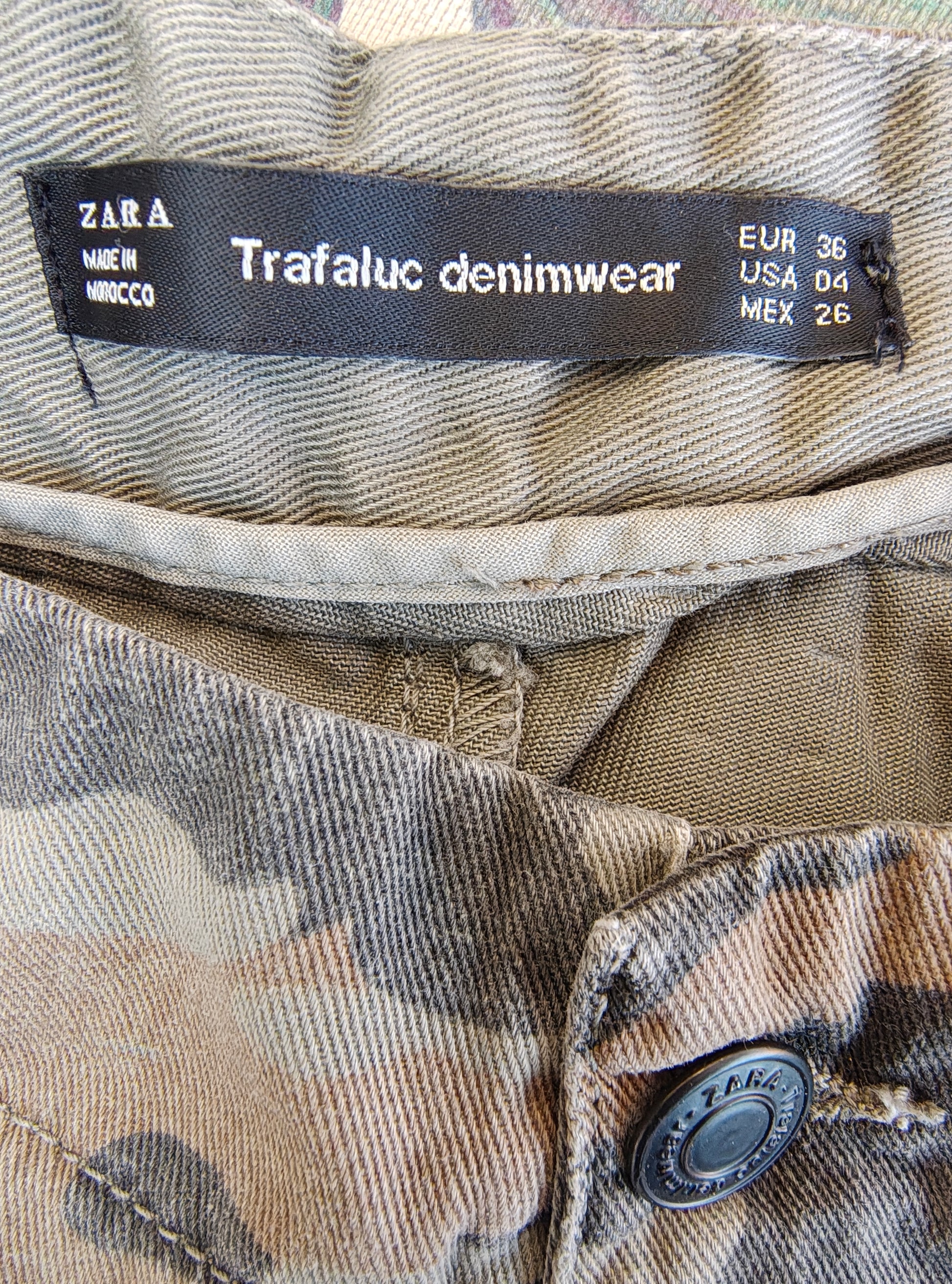 USADO – Pantalón camuflaje con parches personalizados ZARA Trafaluc denimwear (Talla EUR 36)