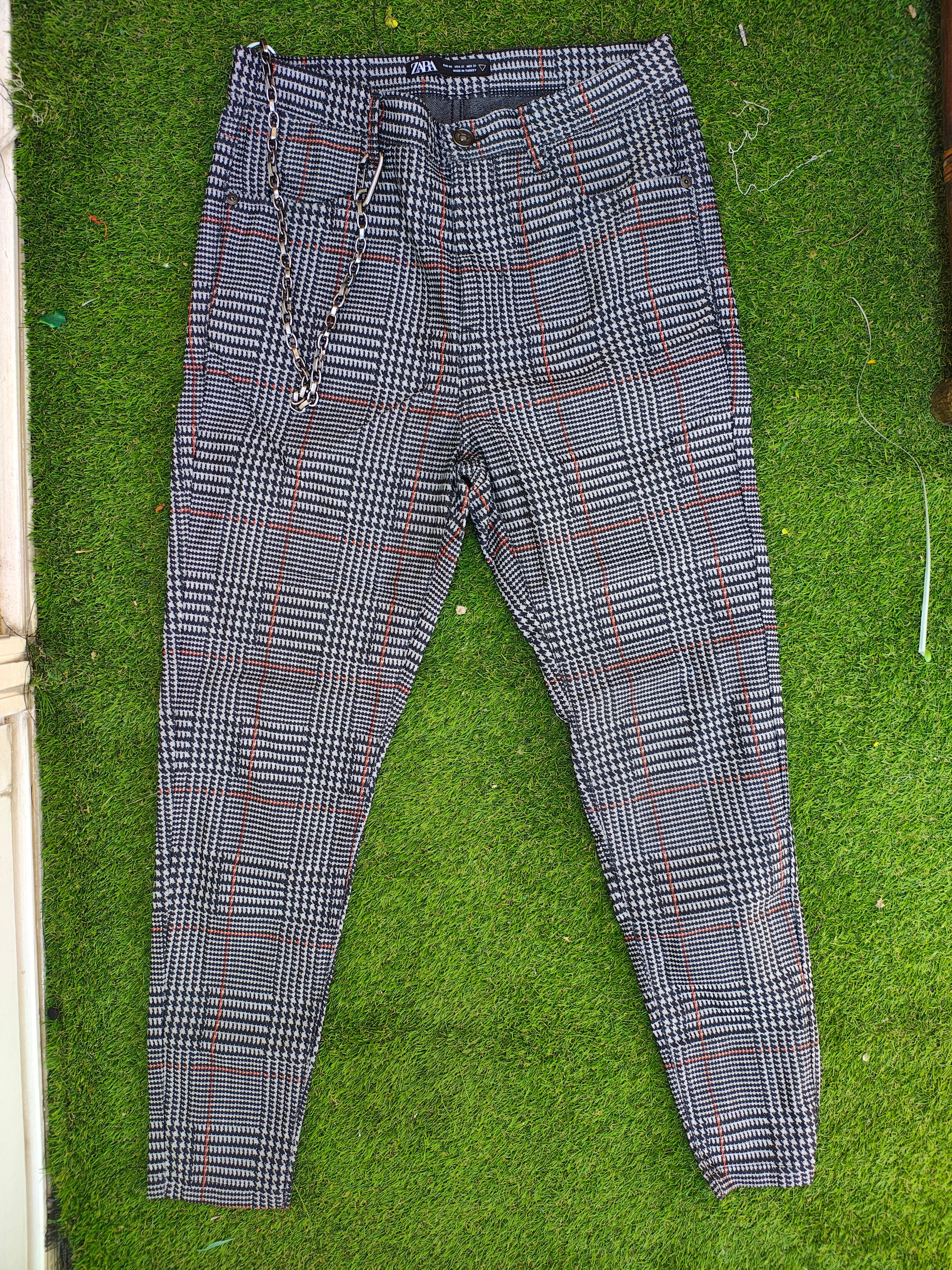 USADO – Pantalón cuadros Príncipe de Gales con cadena ZARA (Talla EUR 40)