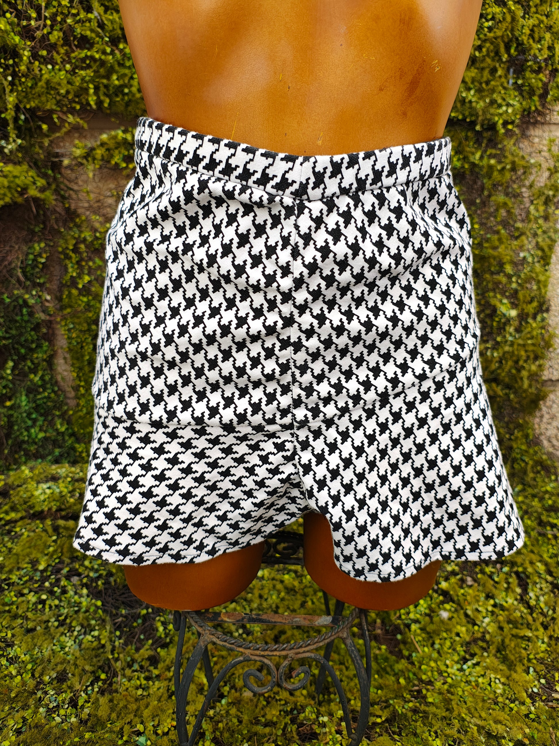 🖤 Short style jupe avec un imprimé pied-de-poule noir et blanc classique, idéal pour un look élégant ou décontracté avec des touches rétro.