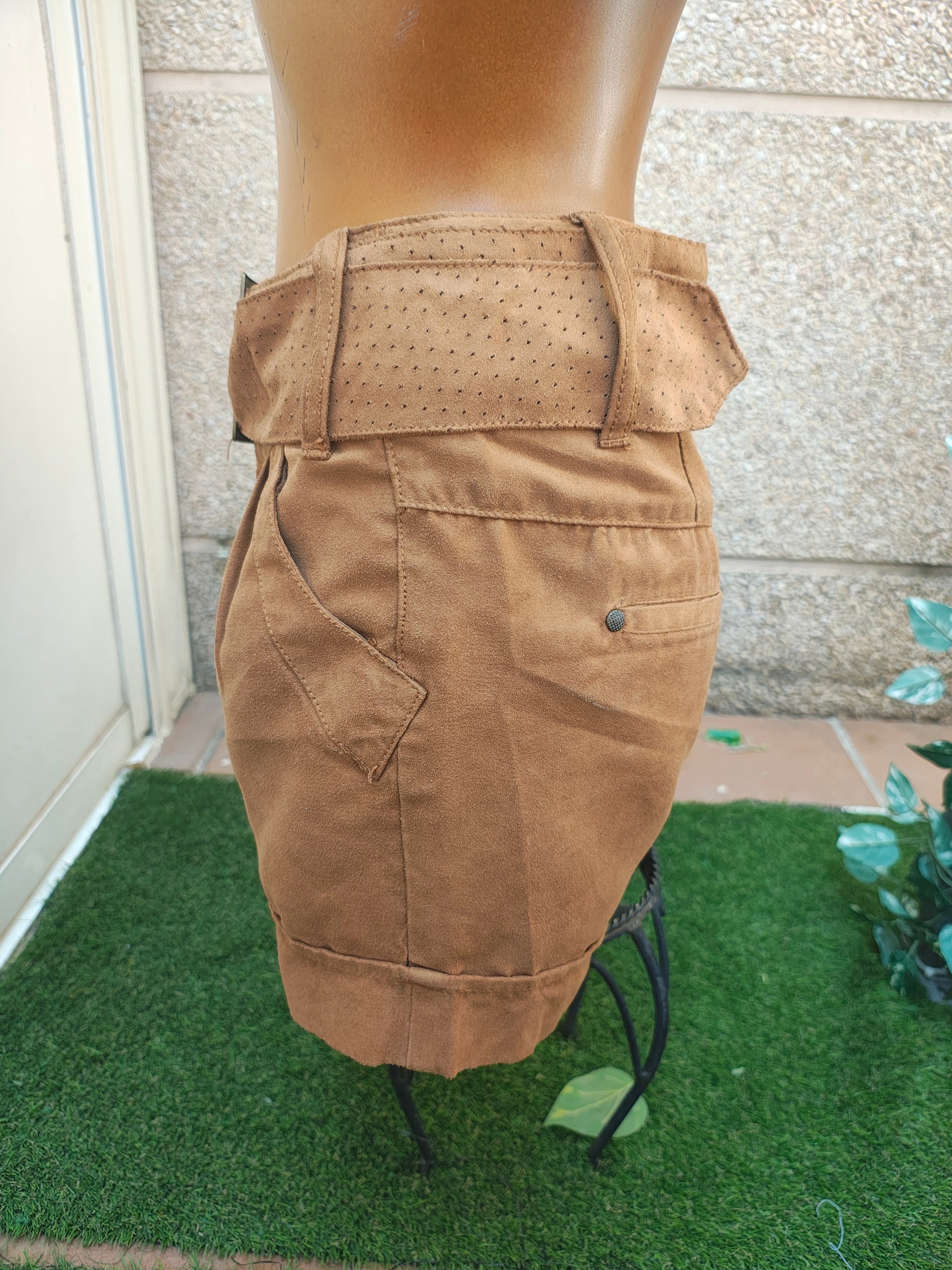 D'OCCASION – Short ceinturé marron STRADIVARIUS (Taille 34 EUR)