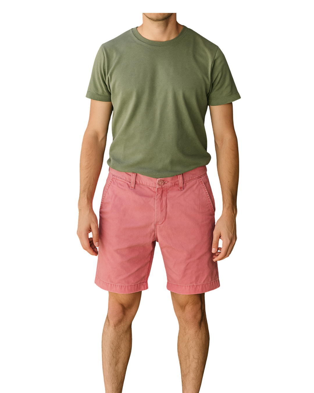 👖 Shorts estilo chino en un alegre tono rosa, perfectos para looks casuales de verano. Corte recto hasta la rodilla con bolsillos laterales y traseros.