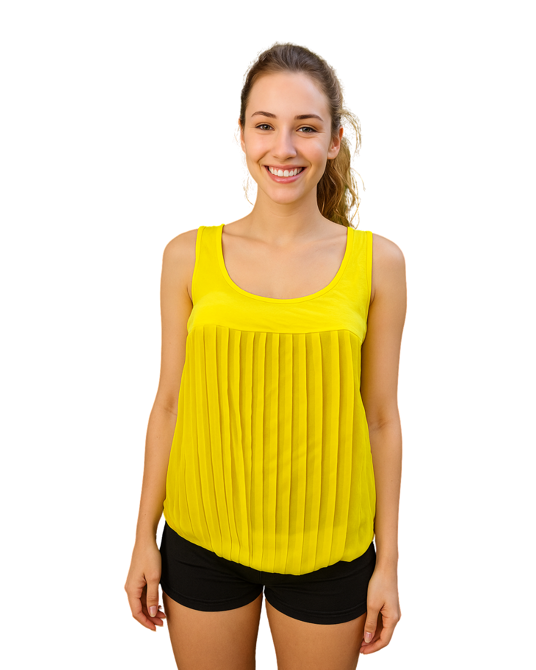 🌞 Haut sans manches en jaune vif, idéal pour ajouter une touche de lumière à n'importe quel look.