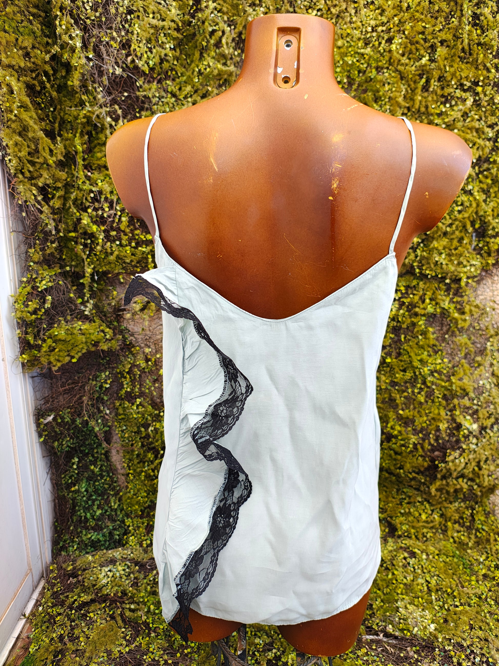 Top à fines bretelles gris clair au design asymétrique très original et féminin.