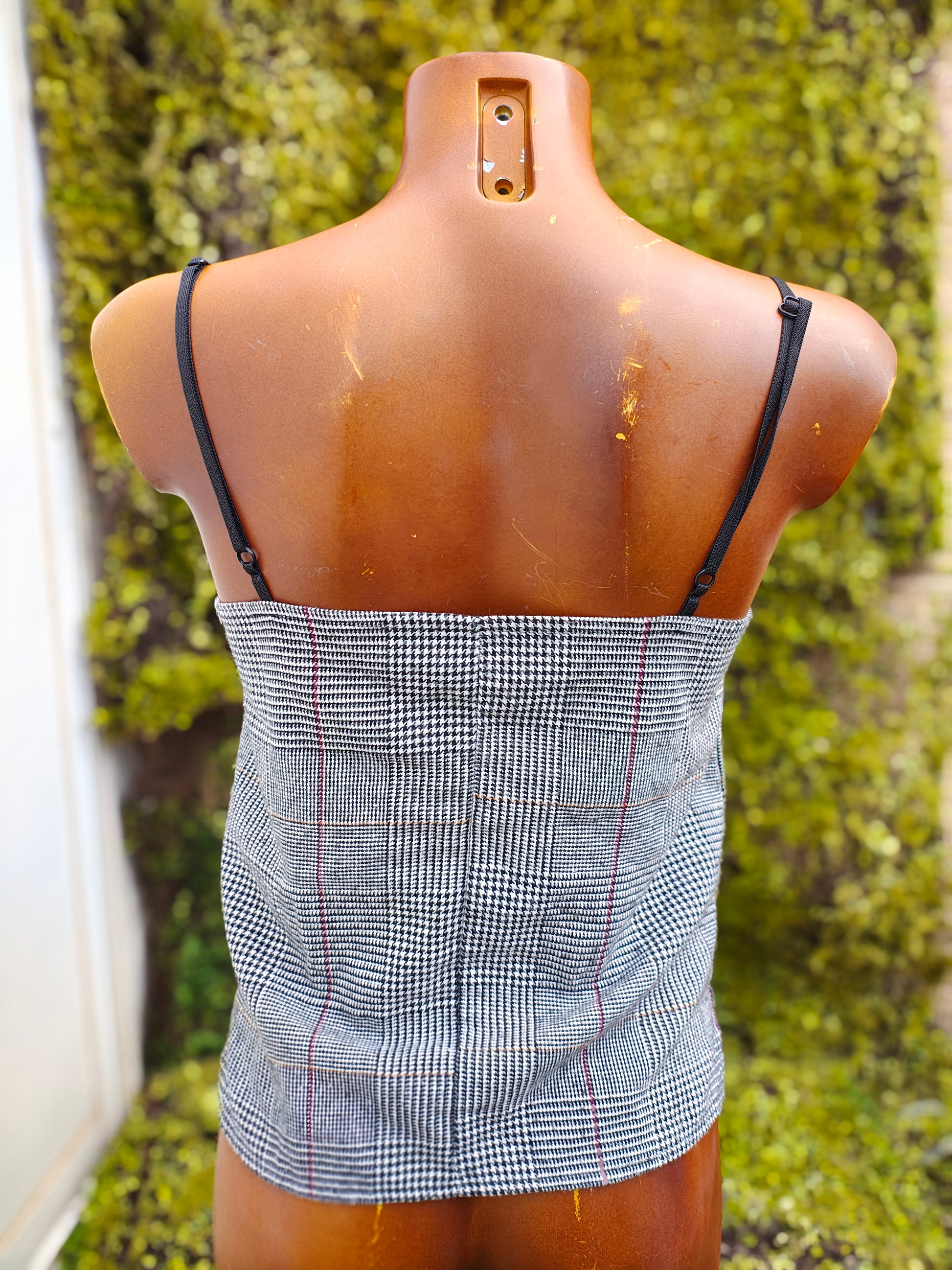 Camisole à imprimé Prince de Galles et dentelle d'occasion (taille S)