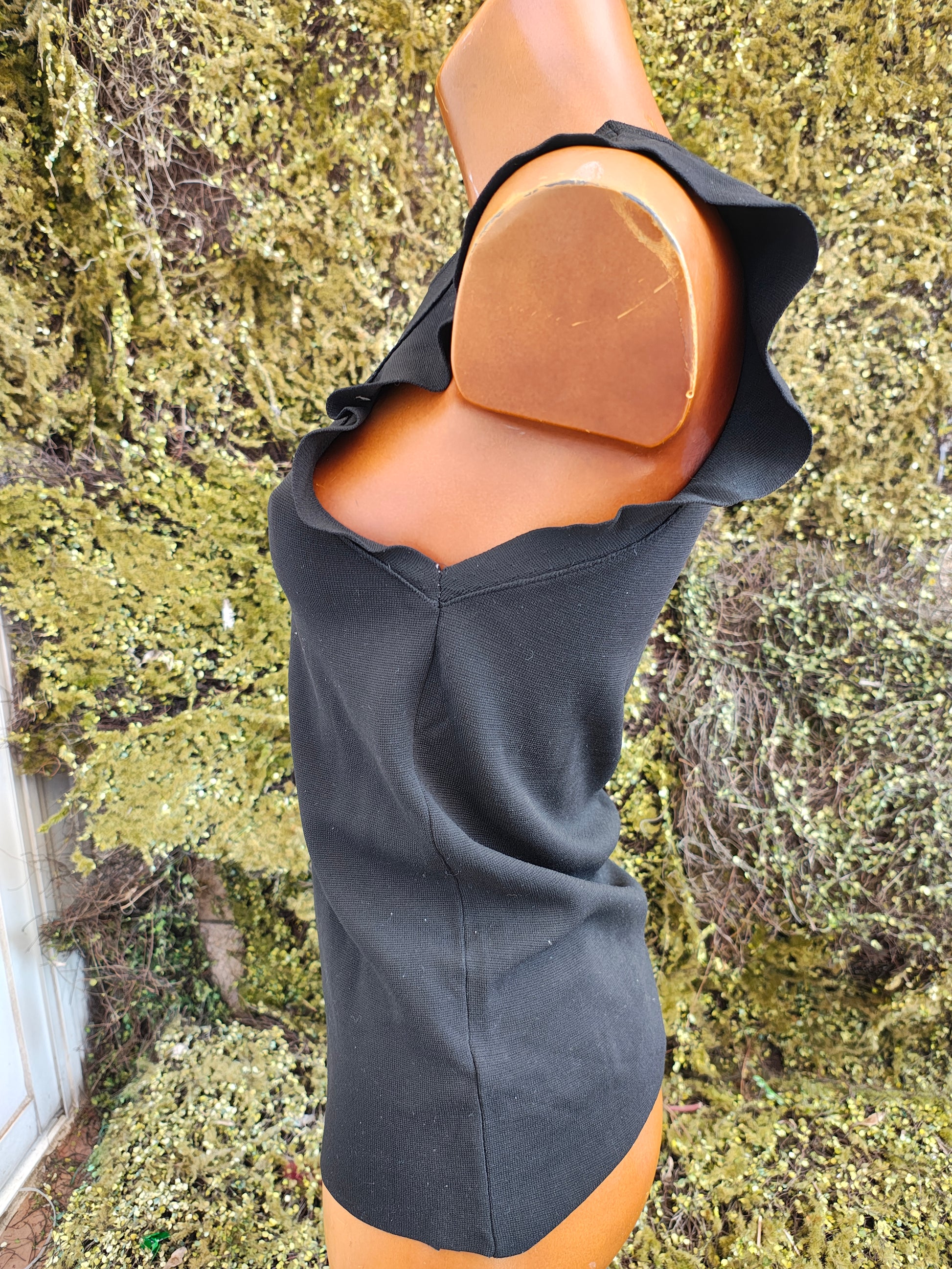 D'OCCASION – ZARA KNIT haut noir sans manches à volants (taille S)