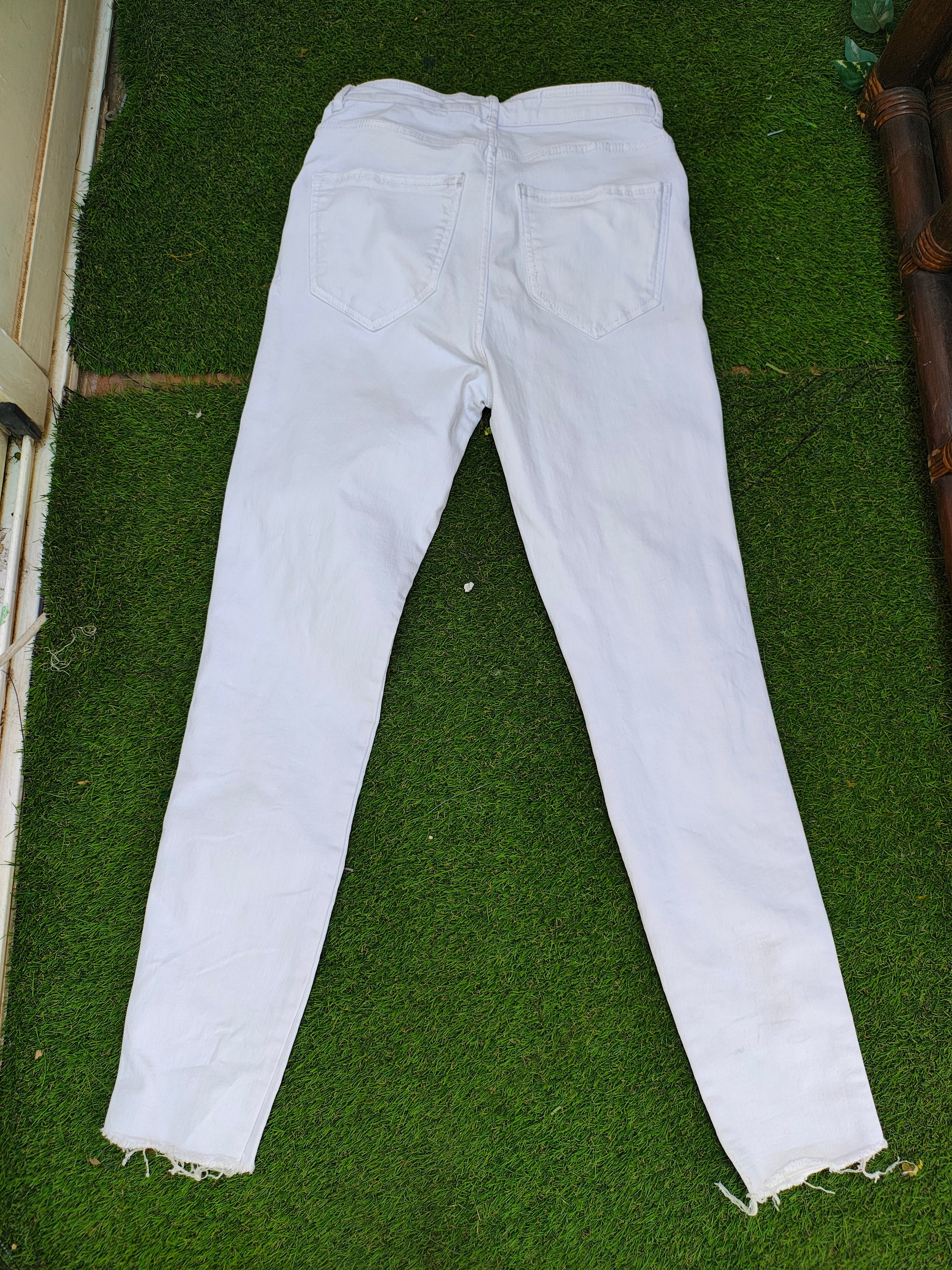 USADO – Vaquero blanco con franjas laterales ZARA Trafaluc Denim Collection (Talla 36)