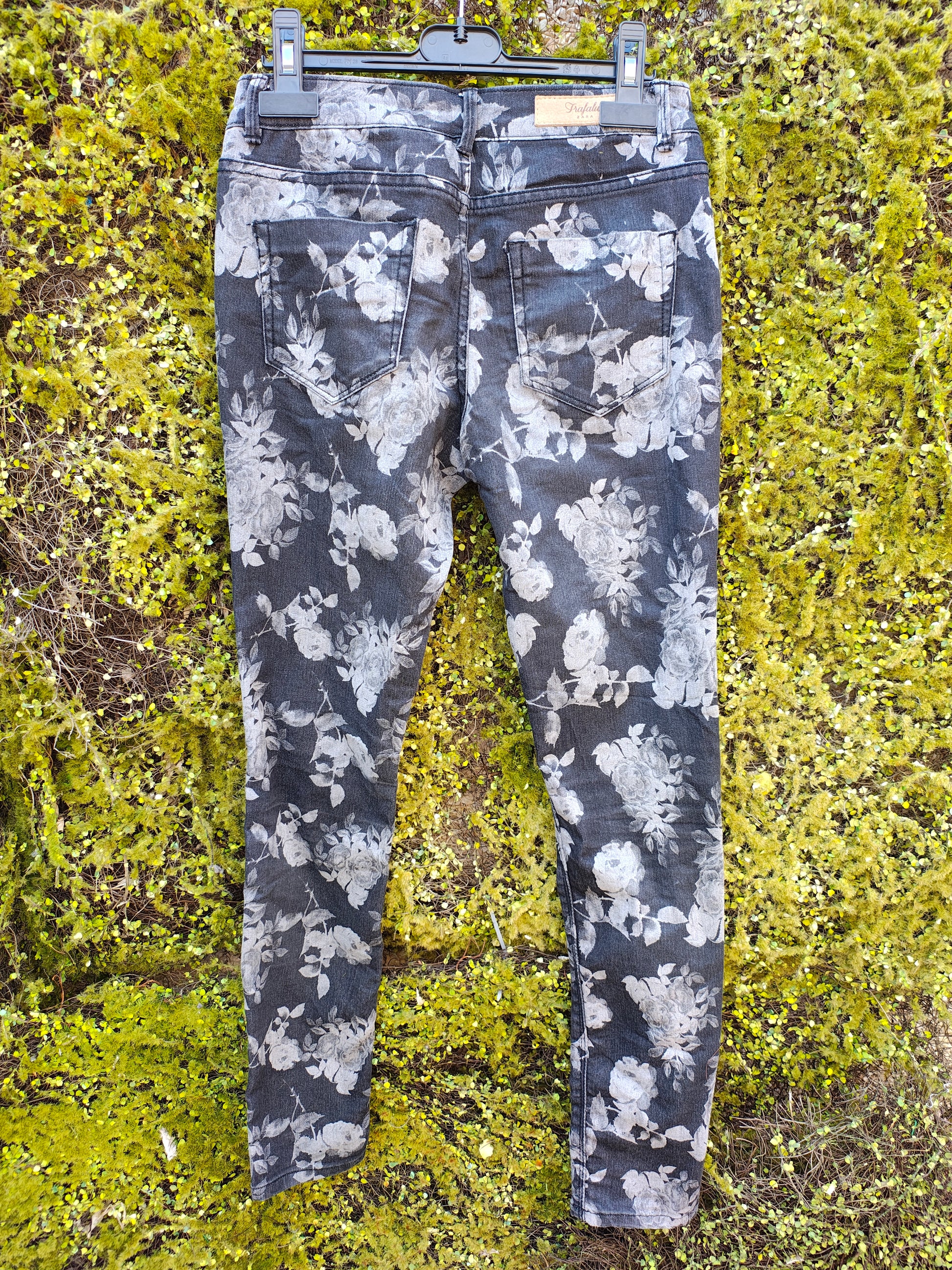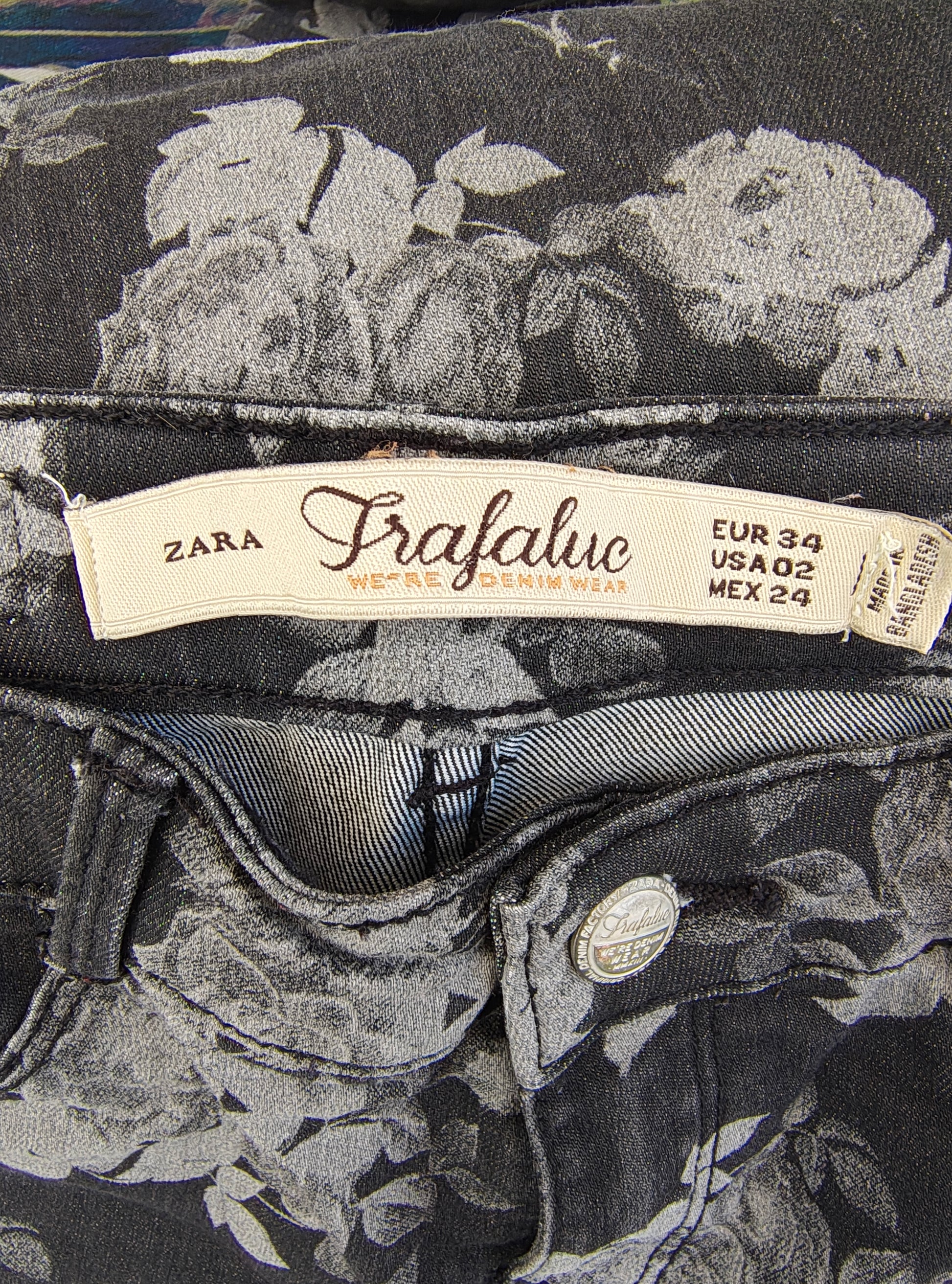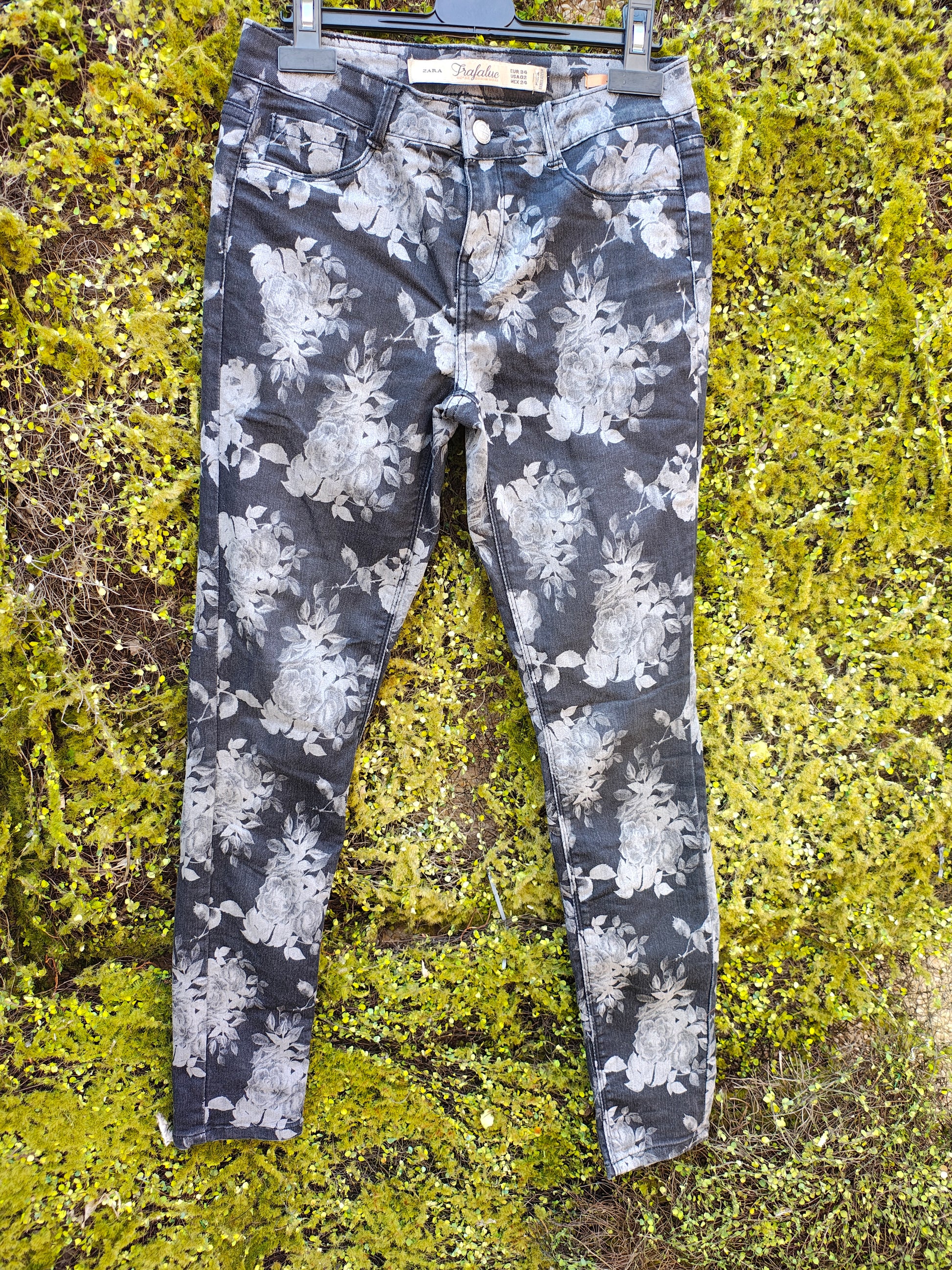 D'OCCASION – Jean skinny gris à imprimé floral ZARA Trafaluc (Taille 34 EUR)