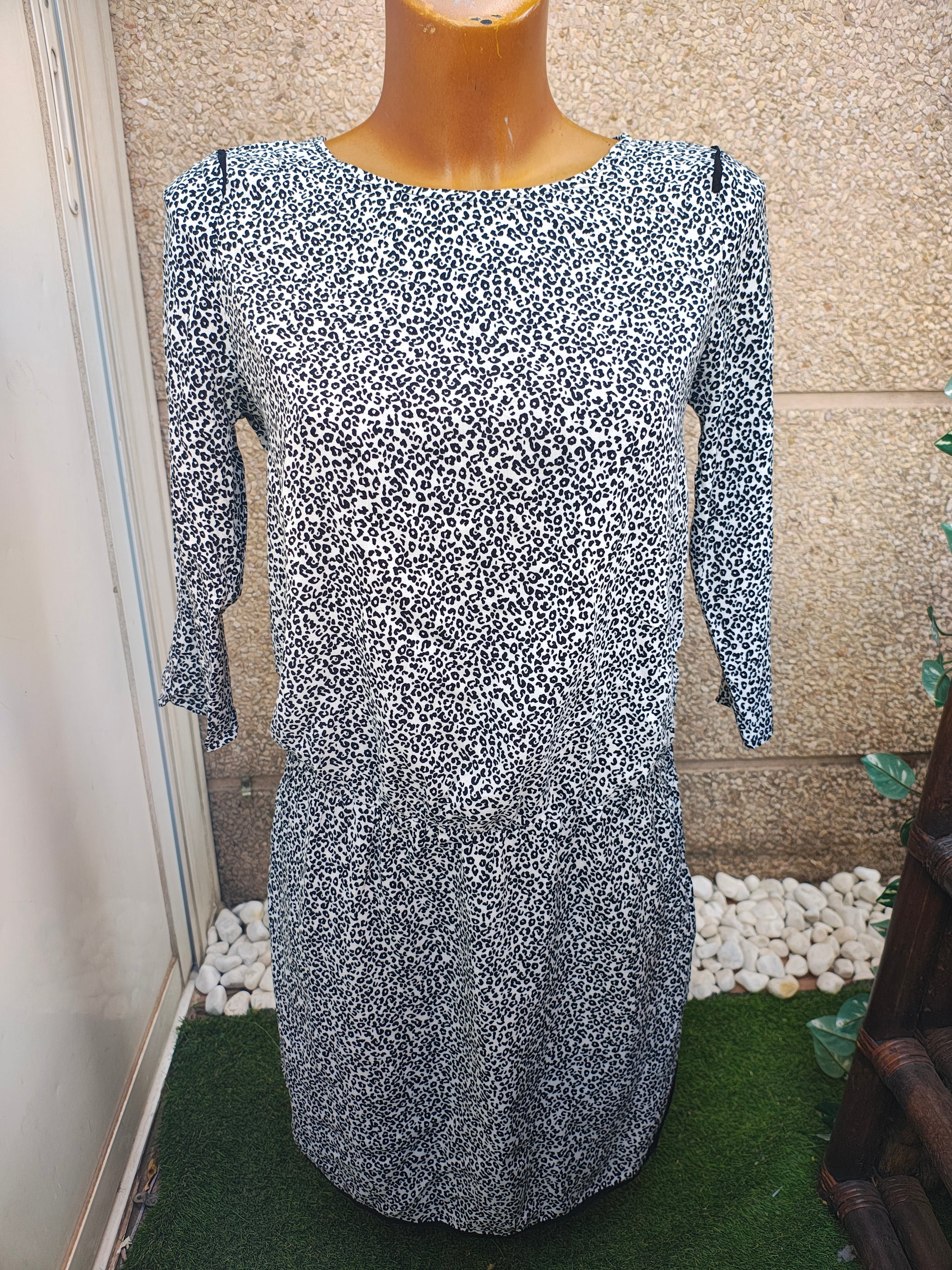 USADO – Vestido estampado animal print blanco y negro EASY WEAR (Talla M)