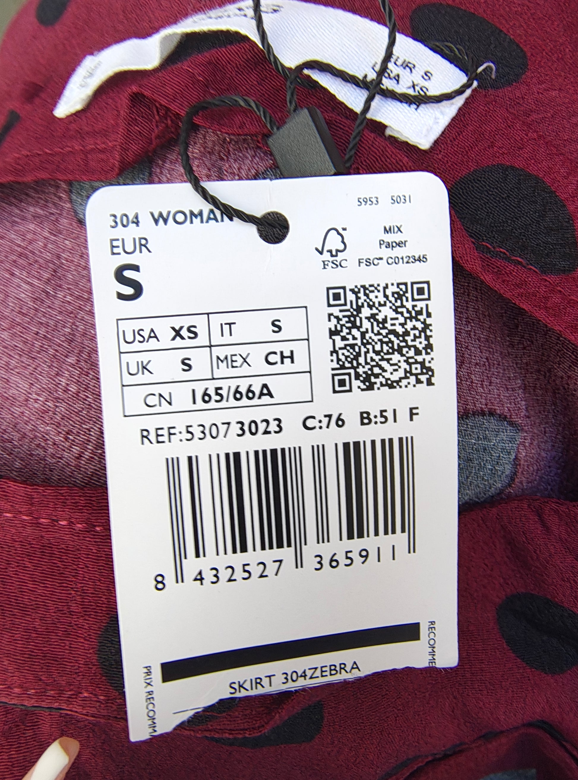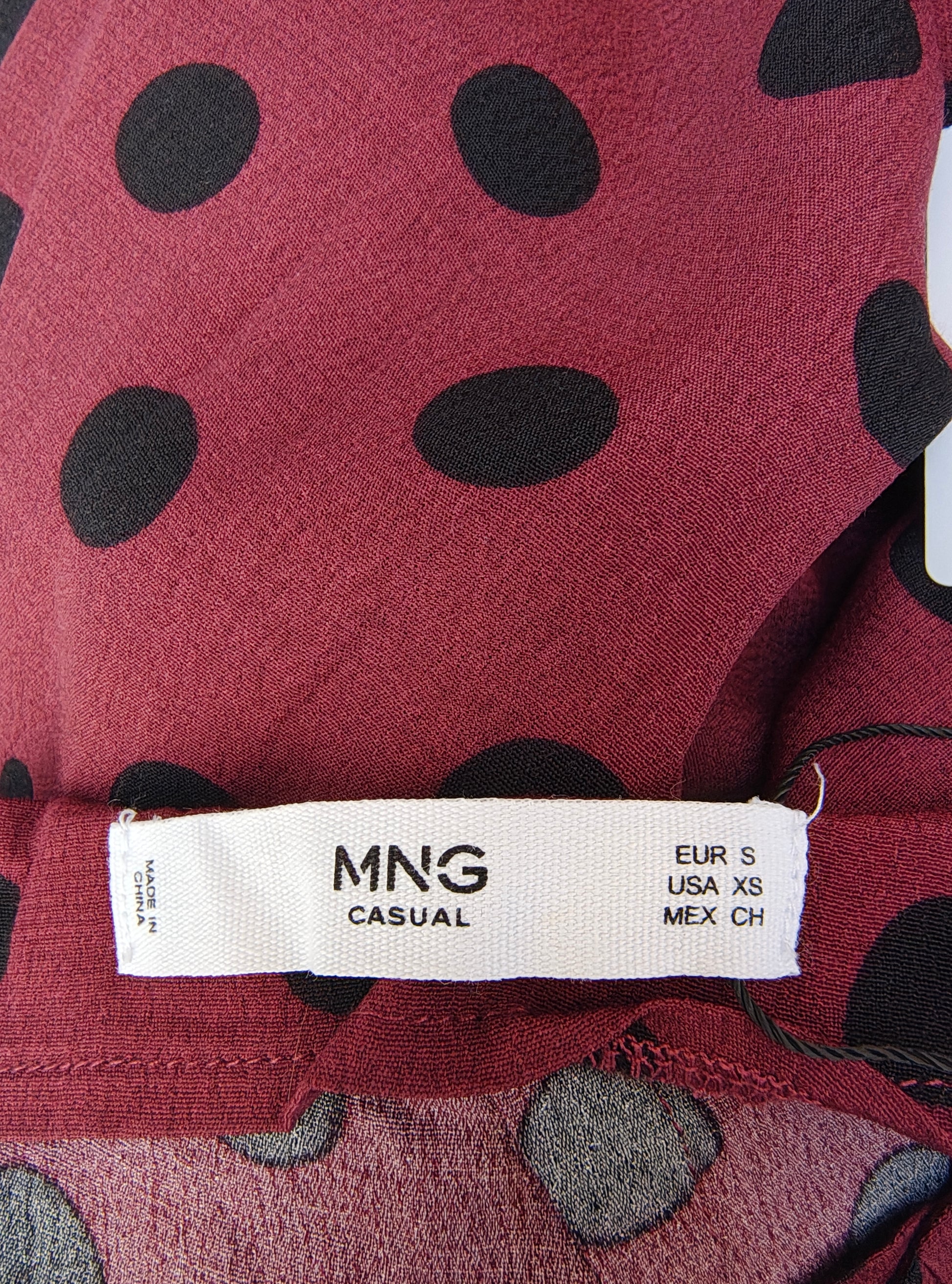 NUEVO – Falda de lunares granate con cinturón MNG Casual (Talla EUR S)