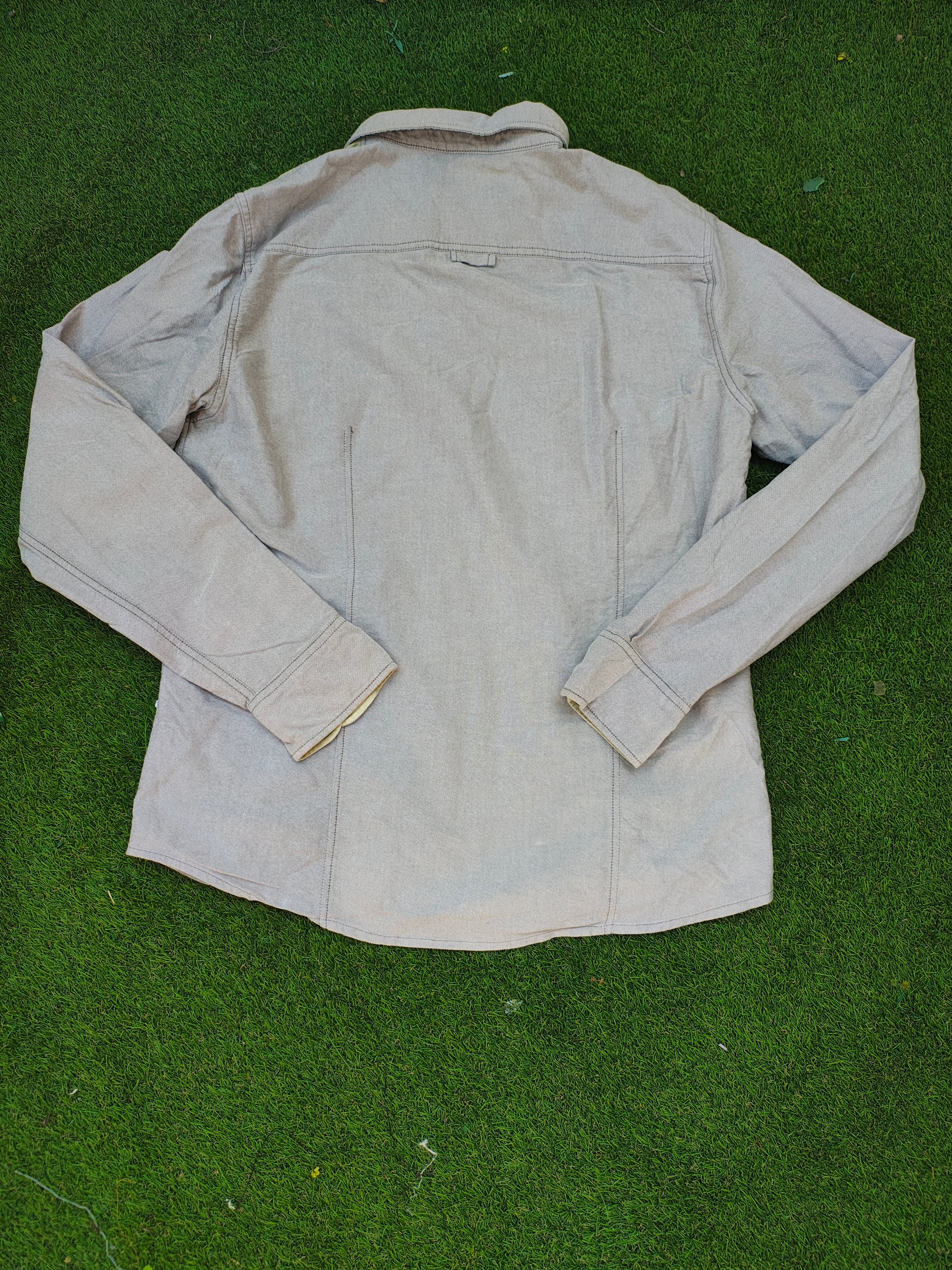 USADO – Camisa beige con bloque en verde lima de Bershka (Talla XL)