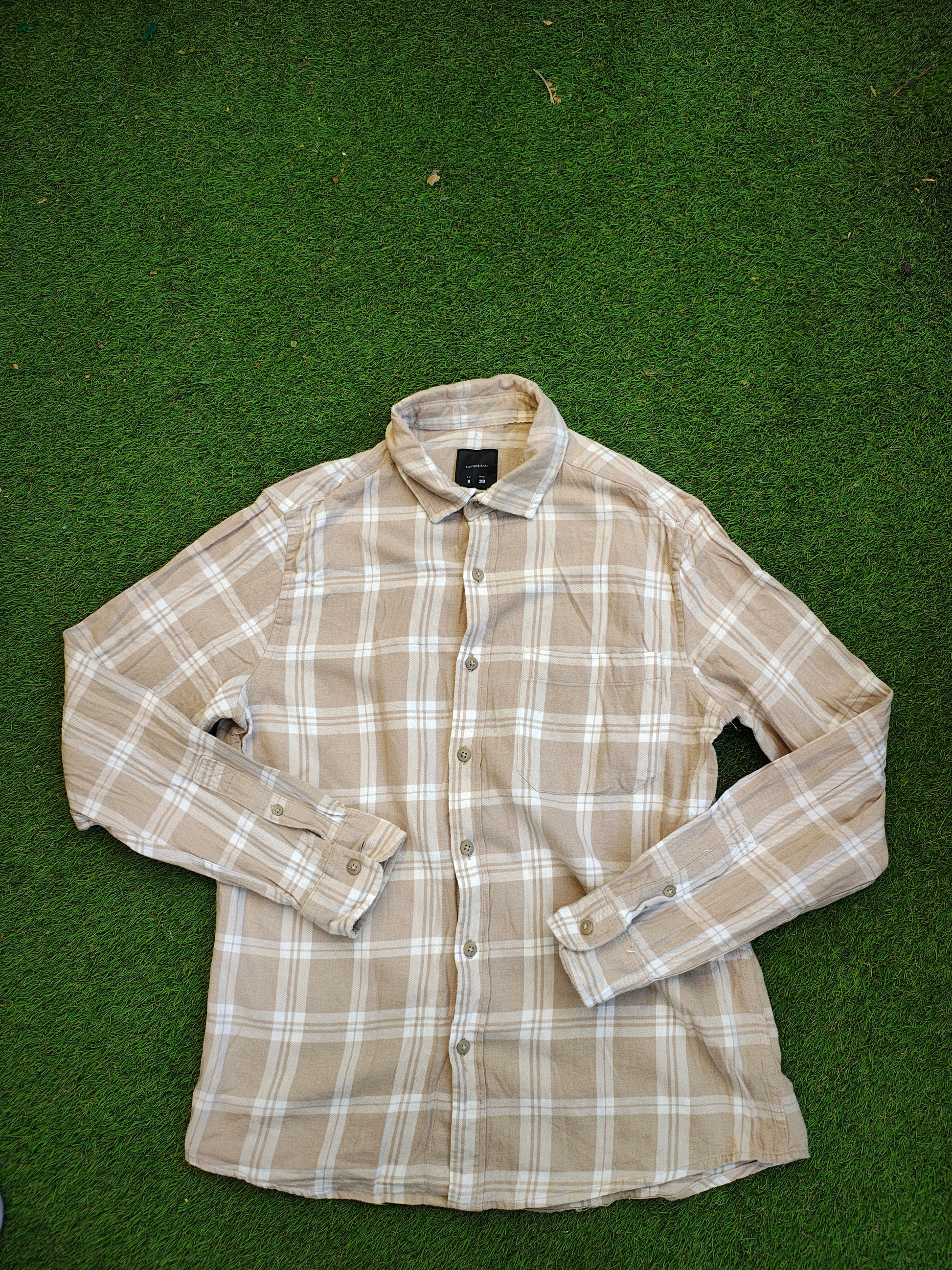 USADO – Camisa beige de cuadros blancos LEFTIESMAN Regular Fit (Talla EUR S)