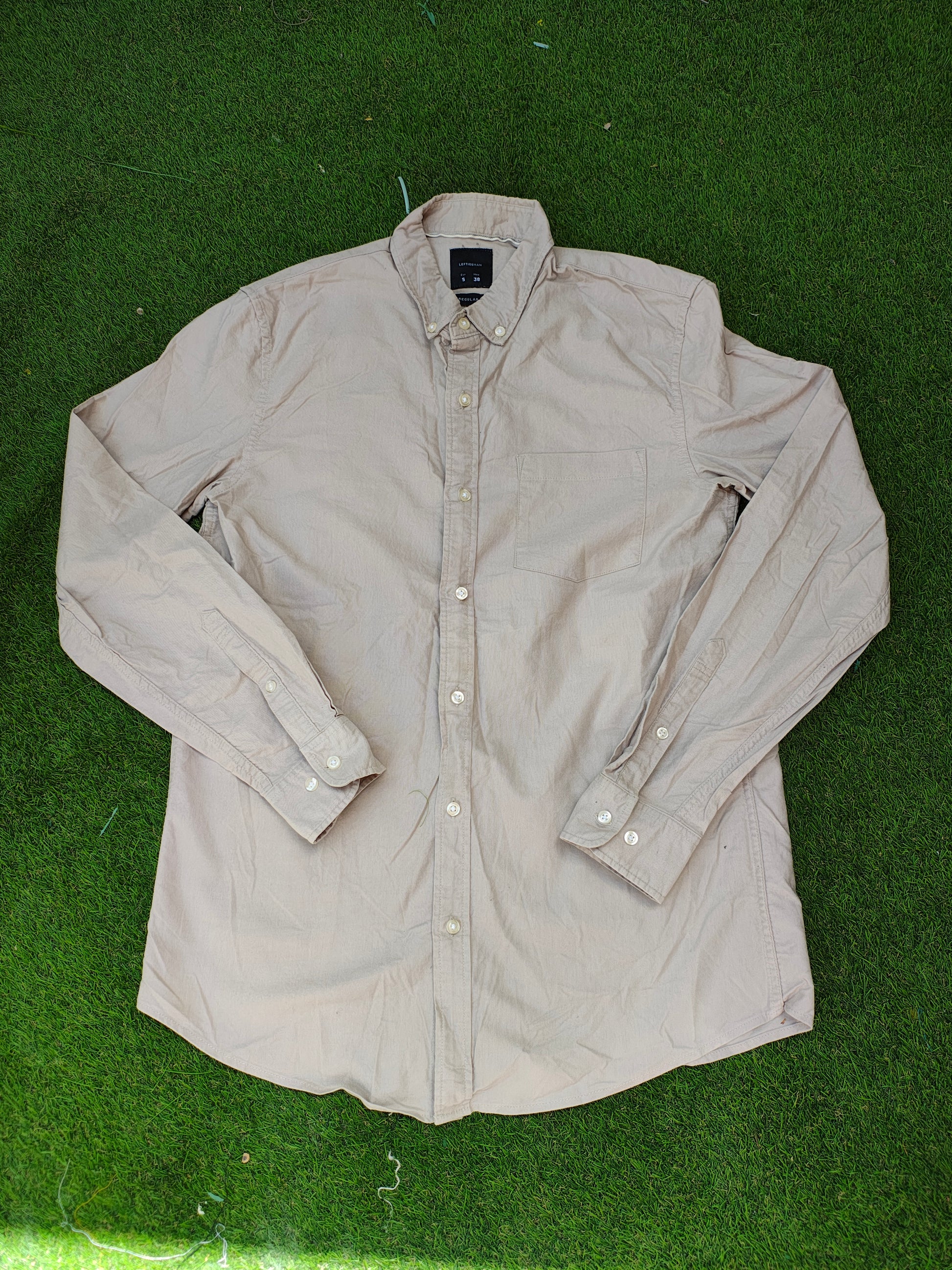 USADO – Camisa caqui de manga larga con bolsillo delantero LEFTIESMAN Regular Fit (Talla EUR S)