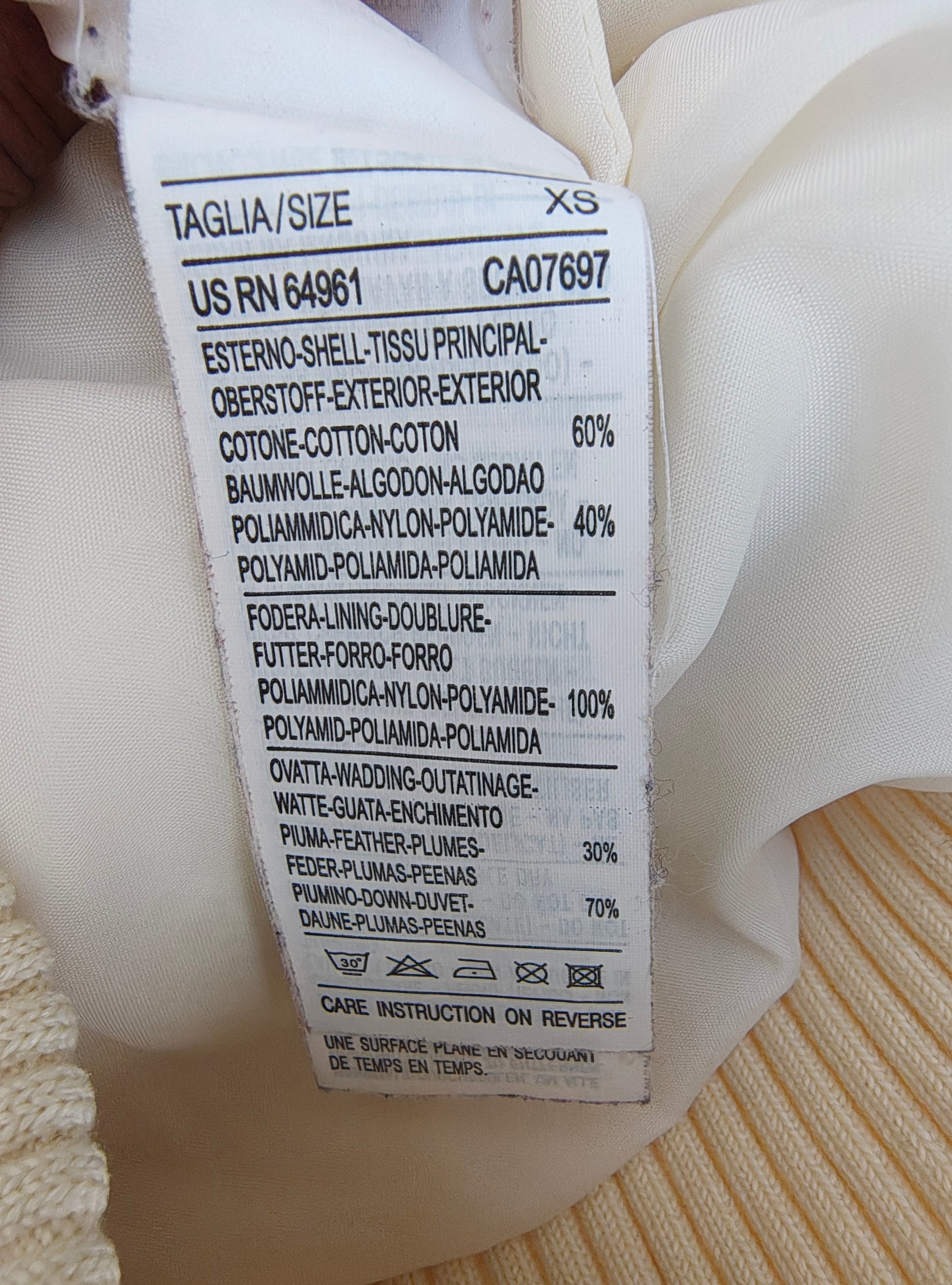 🧵 Composición: Exterior 60% algodón, 40% poliamida. Forro 100% poliamida. Relleno: 70% plumón, 30% pluma.