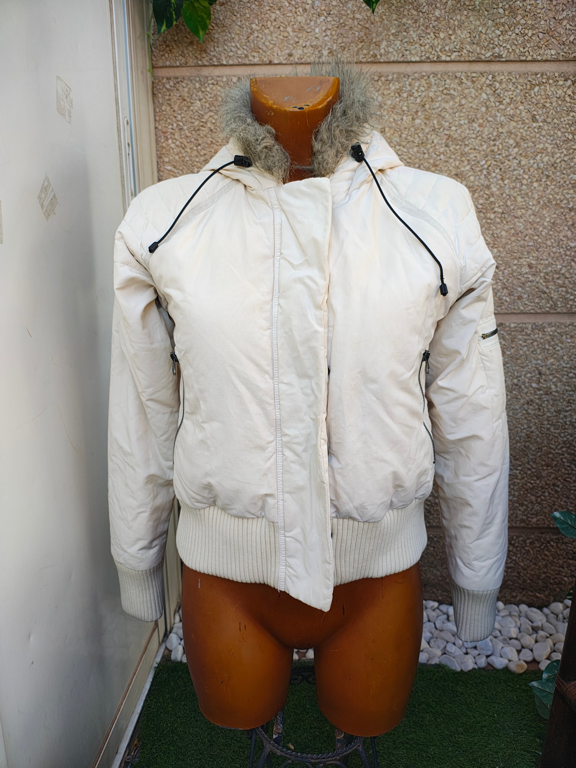 USADO – Cazadora acolchada blanca con capucha de pelo sintético KILLER LOOP (Talla XS)