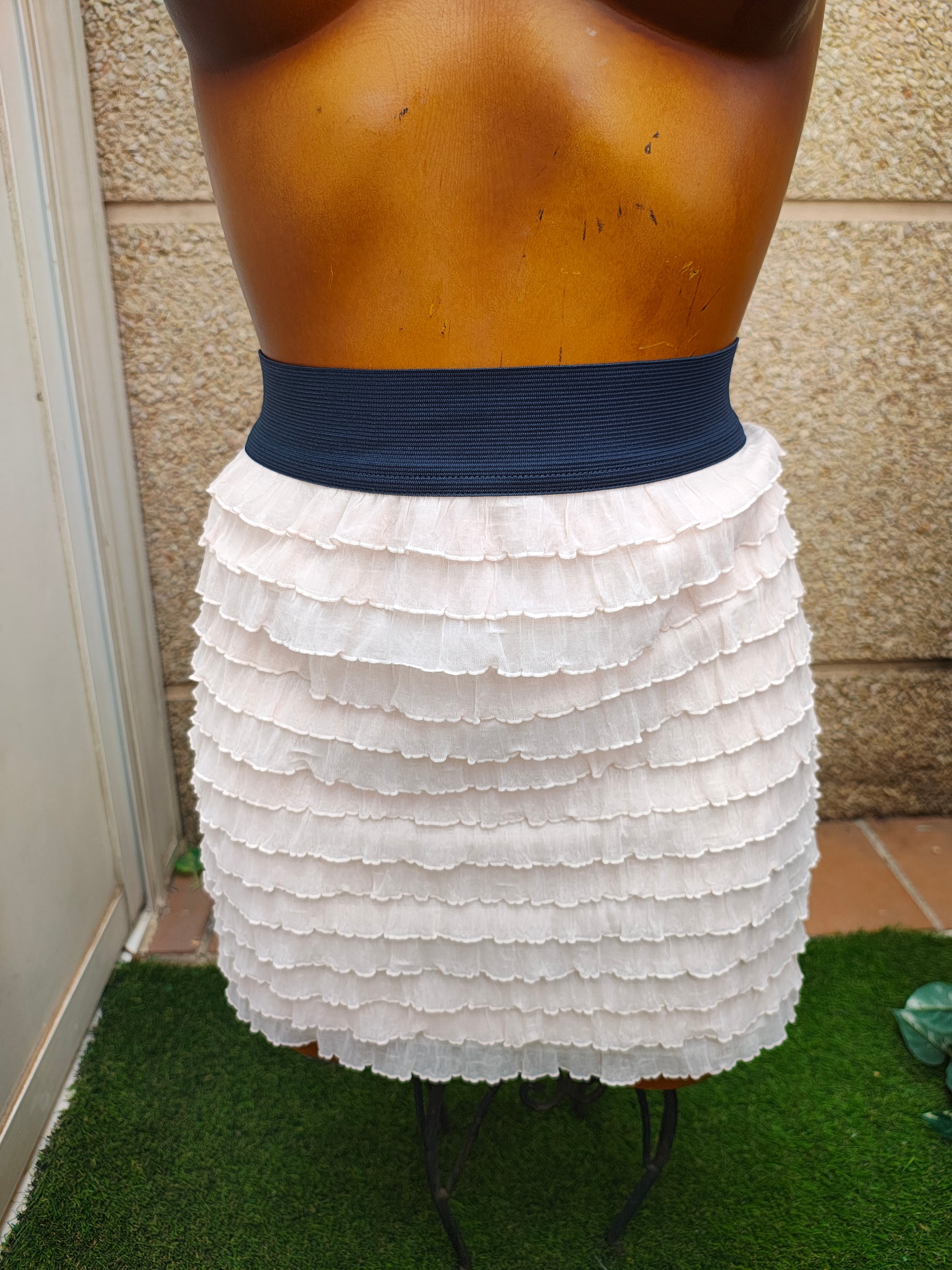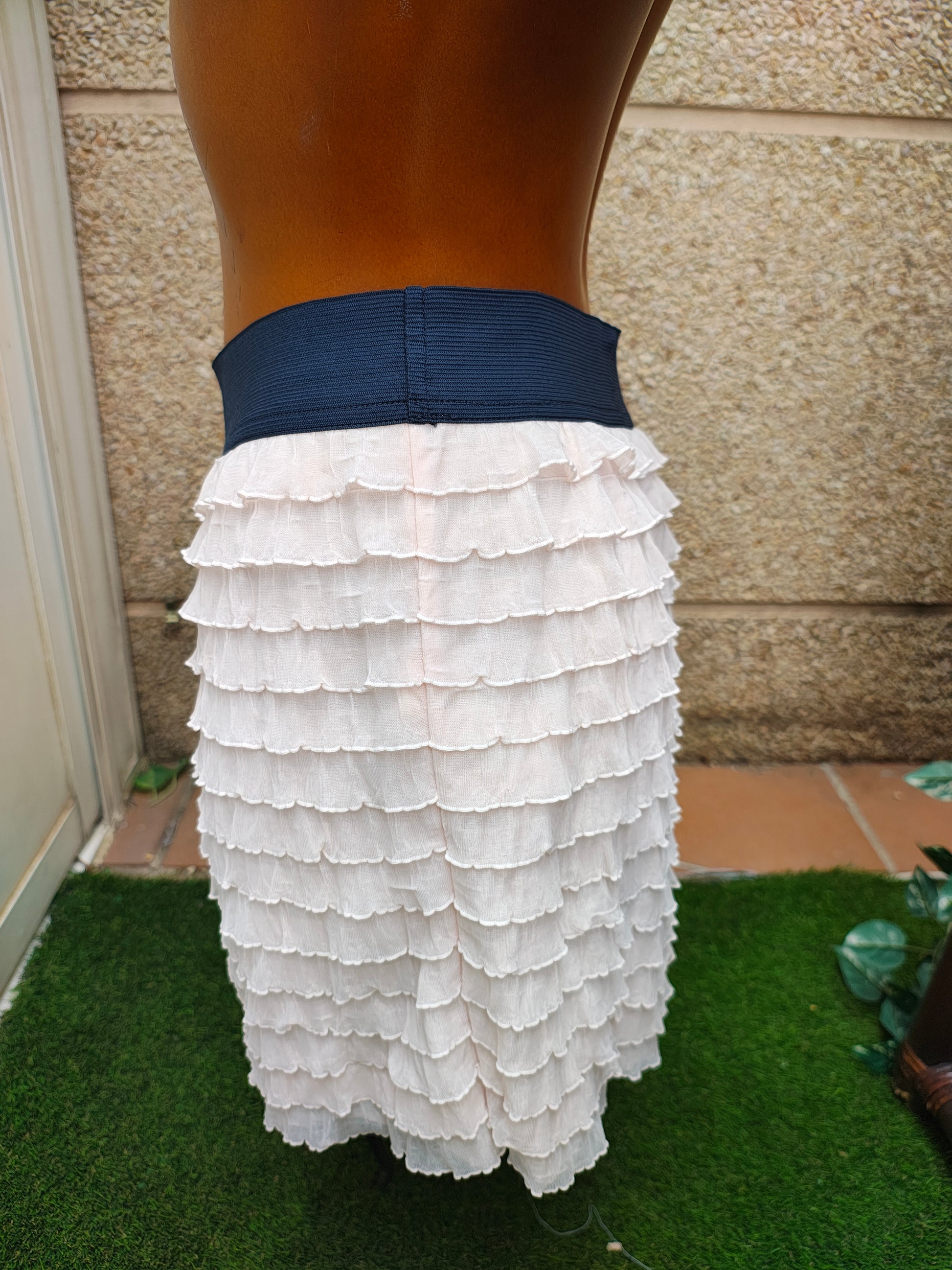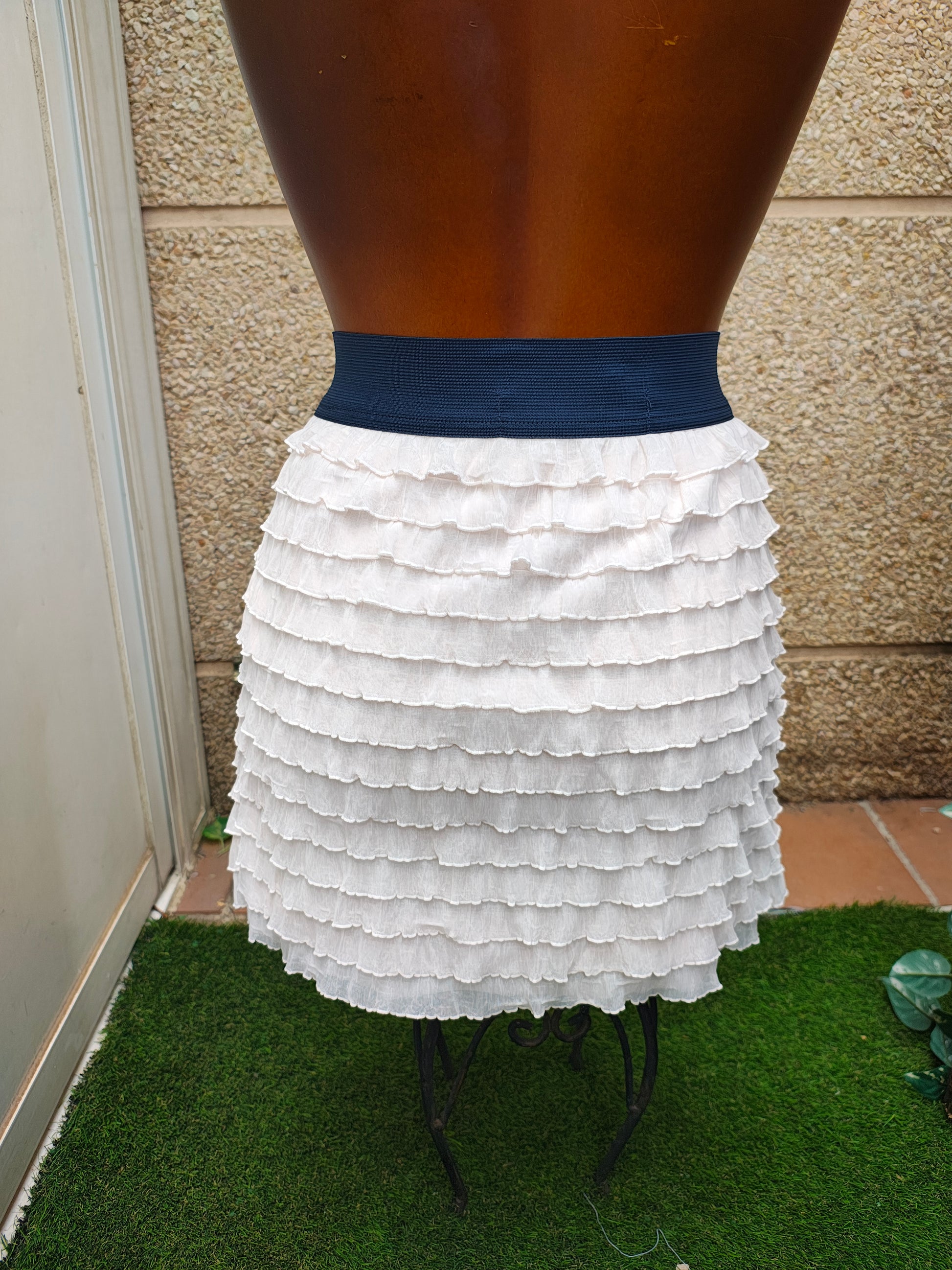 USADO – Falda blanca de volantes con cinturilla elástica azul oscuro GIN WATTEN (Talla L)