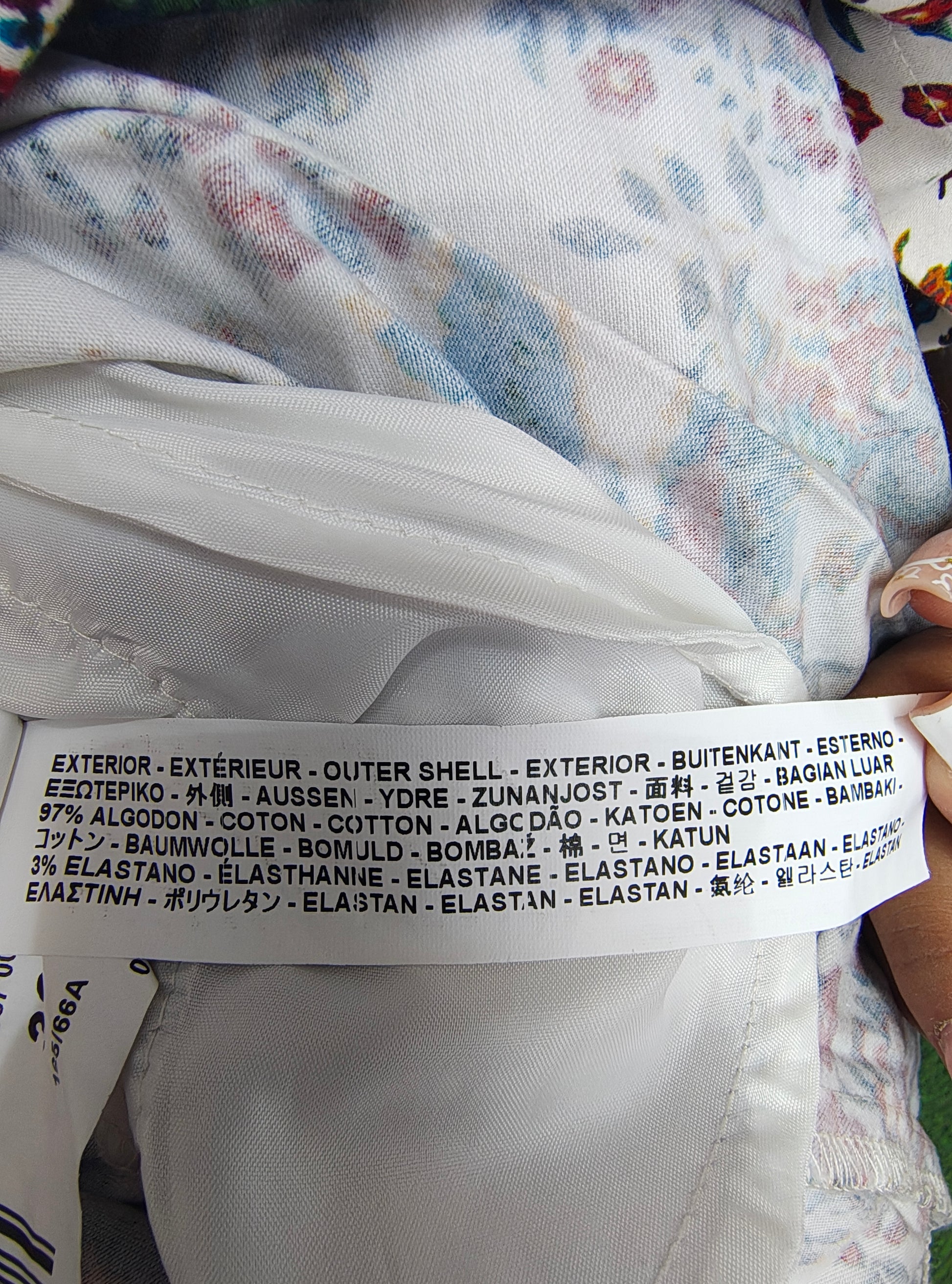 🌸 Falda corta de corte evasé con precioso estampado floral sobre fondo blanco. Su diseño lleno de color y movimiento es perfecto para la temporada de primavera/verano y le da un aire romántico y vibrante a cualquier look.