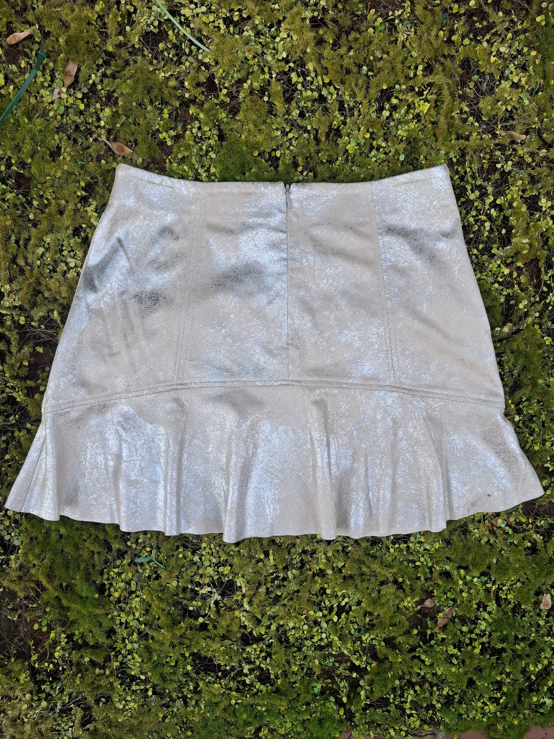 USADO – Falda corta plateada con volante Mango Casual (Talla 36)