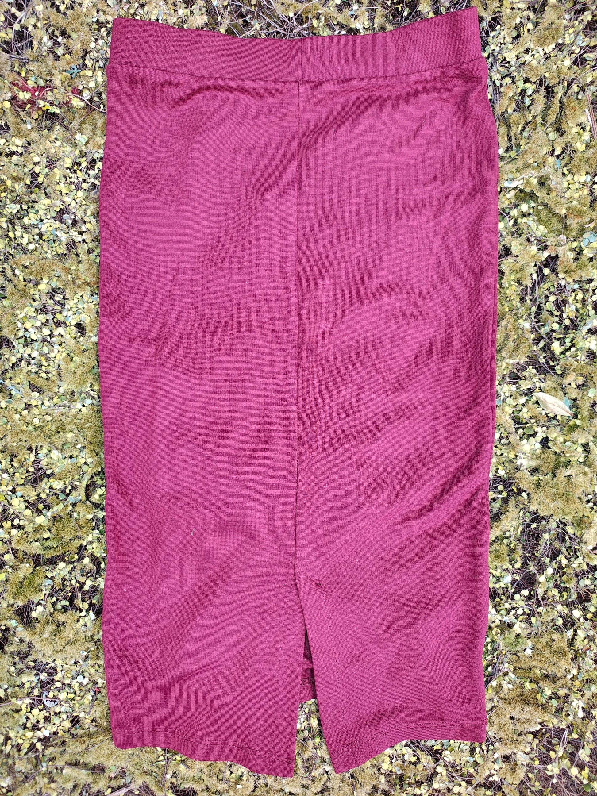 USADO – Falda midi de punto en color burdeos con abertura trasera stradivarius (Talla estimada S)