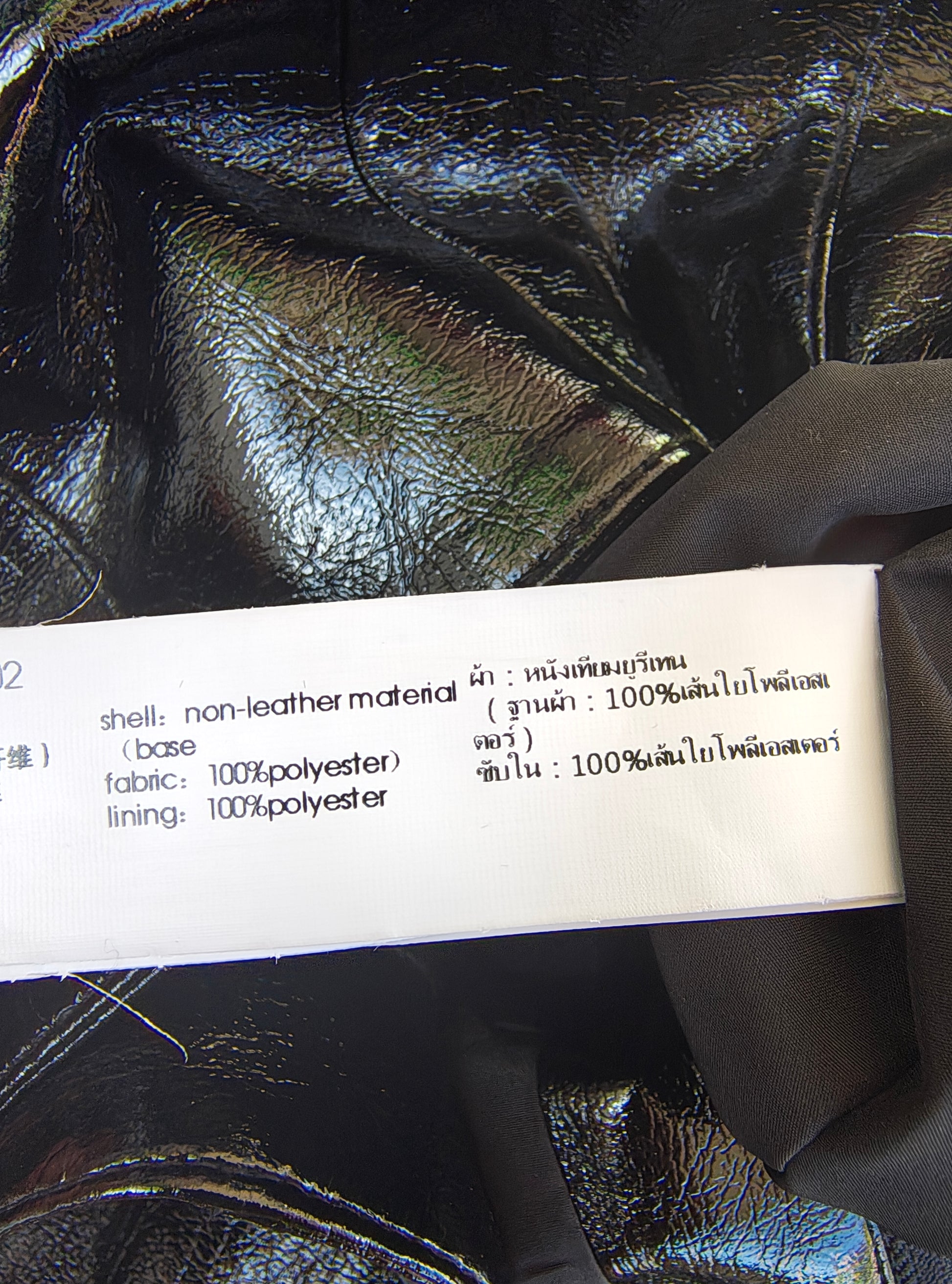 ⚡ Falda corta en acabado brillante efecto vinilo color negro, con diseño estructurado y detalles de pespuntes verticales. Parte trasera con cremallera metálica visible y dos bolsillos tipo cargo que le dan un toque urbano y moderno. Corte entallado que realza la figura y aporta un estilo atrevido y versátil.