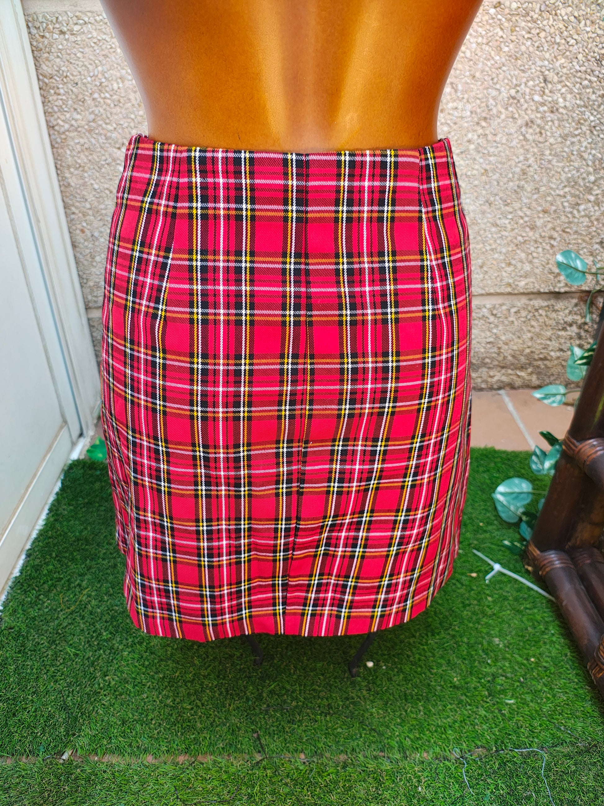 USADO – Falda roja de cuadros con cremallera trasera STRADIVARIUS (Talla EUR 34)