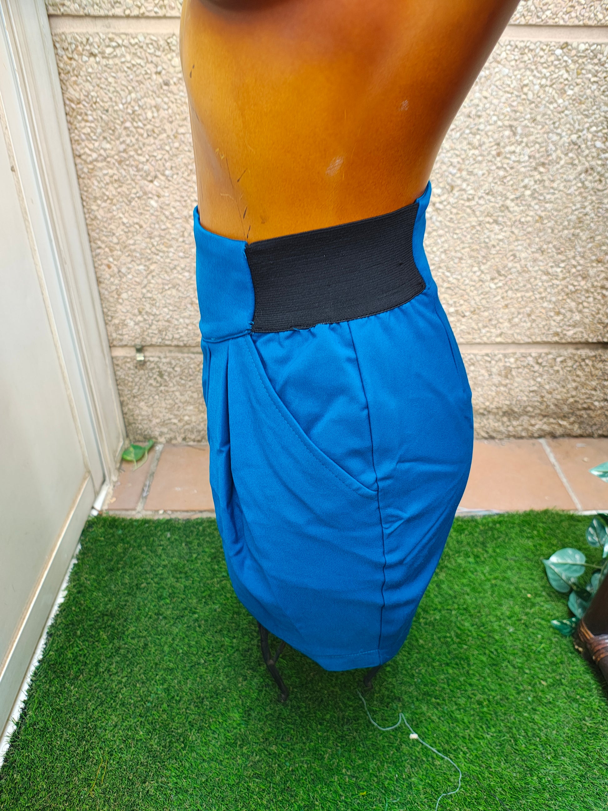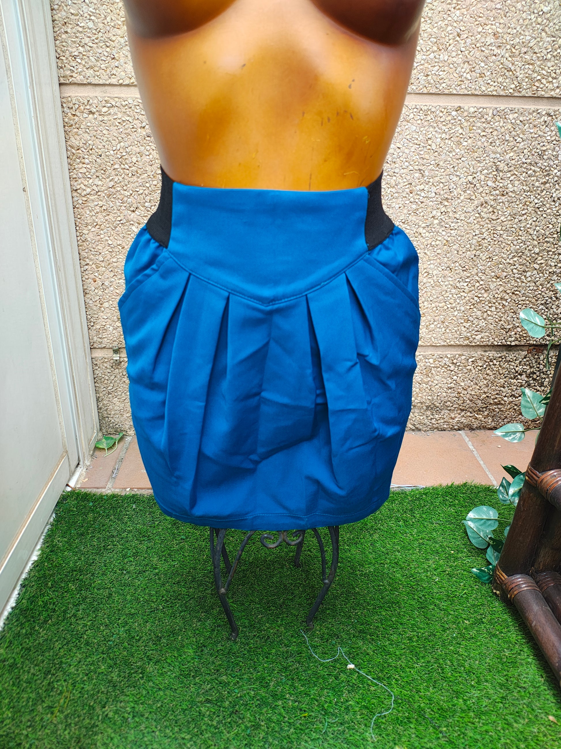 💙 Falda corta tipo globo en un vibrante tono azul eléctrico, con diseño estructurado de pliegues que aportan volumen y estilo. Cintura alta con paneles elásticos en los laterales para un ajuste cómodo y favorecedor. Cierre trasero de cremallera oculta. Ideal para looks casuales o de oficina con un toque sofisticado.
