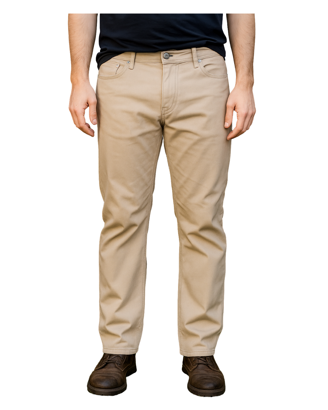 ✨ Pantalón chino en color beige clásico, de corte recto con ligero ajuste que aporta comodidad y estilo. Presenta bolsillos delanteros tipo vaquero, bolsillos traseros y cierre con cremallera y botón metálico personalizado con la marca. Su diseño atemporal lo convierte en un básico versátil para cualquier armario masculino.